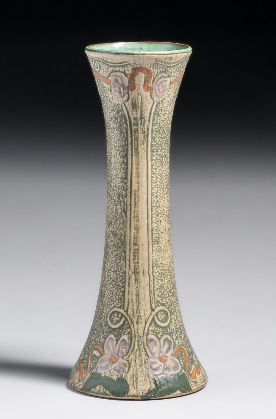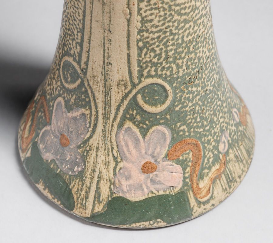 Robinson Ransbottom Pottery Large Luxor Vase c1910s. This form has been has previously been sold as Weller Pottery based on the an erroneous listing in Huxford's Book on Weller Pottery. Unsigned. Perfect condition. 11"h x 4.5"d SOLD
