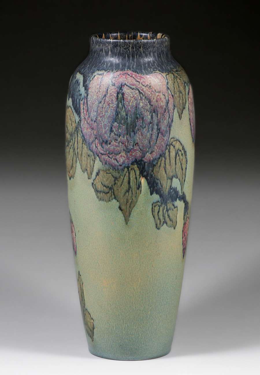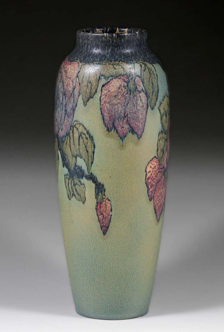 Large Rookwood Pottery Katherine Jones Floral Vellum 1924. Signed. Perfect condition. 17.75"h x 6"d SOLD
