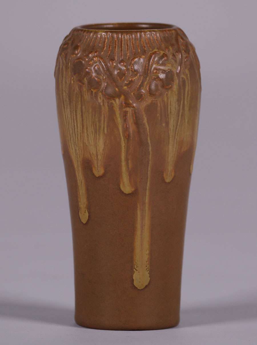 Rookwood matte brown vase with fantastic drip glaze. Perfect condition. Dated 1916. 6.25"h x 3"d SOLD