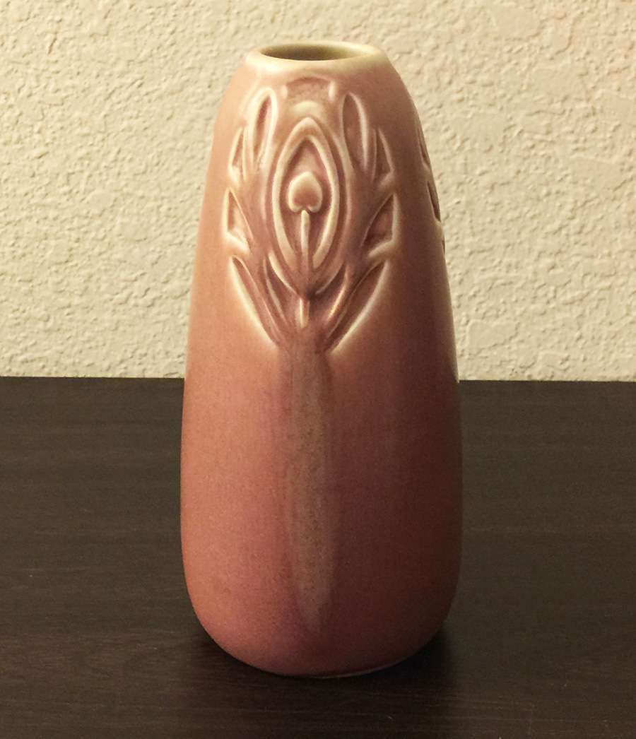 - Rookwood 1920 Matte Pink 6" Peacock Feather Vase