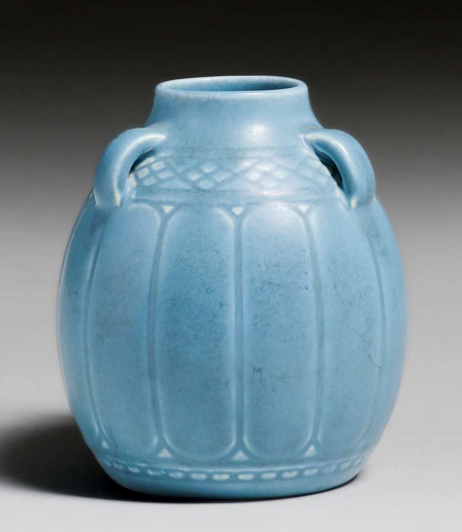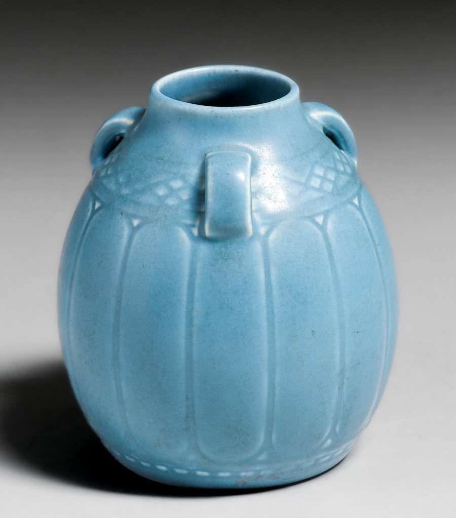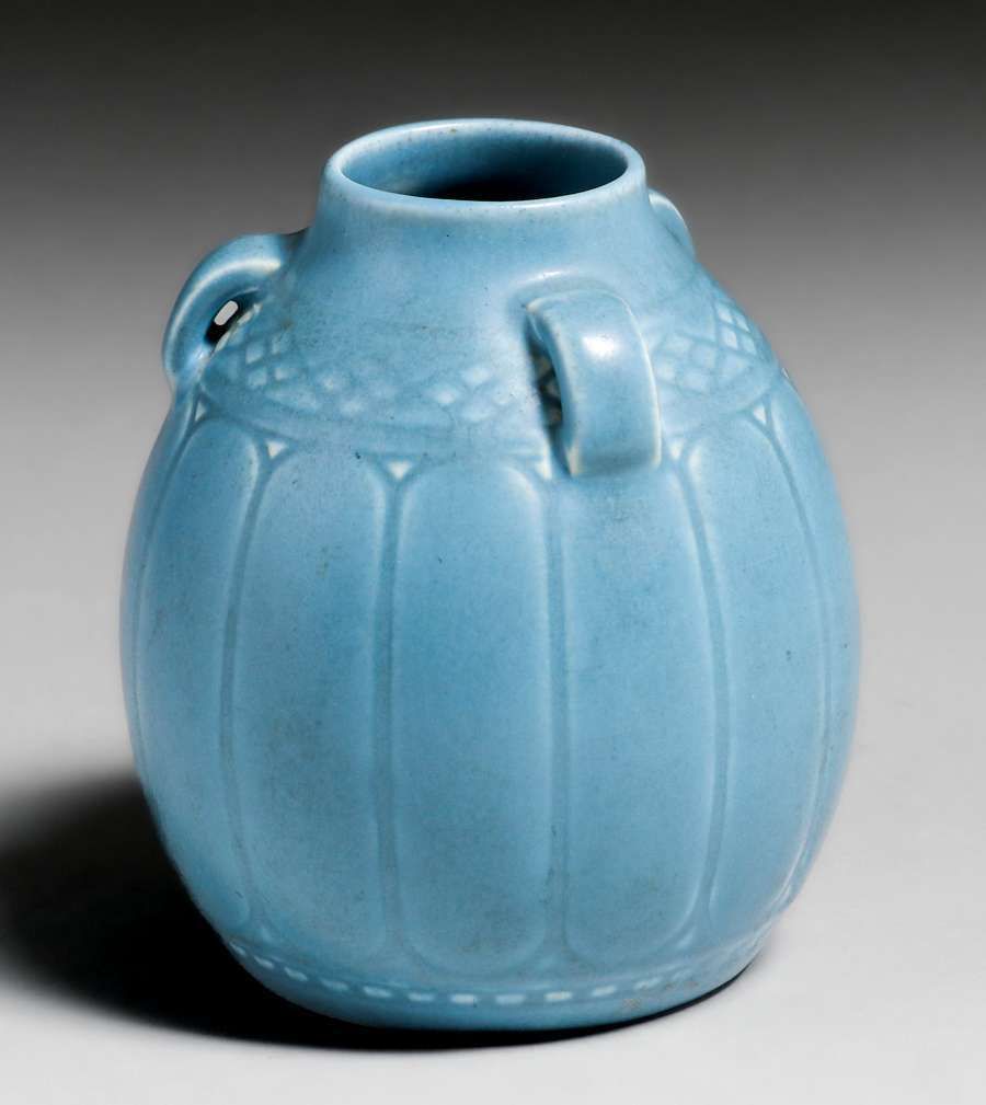 Rookwood #6085 Three-Handle Matte Blue Vase 1929. Signed. Perfect condition. 4.5"h x 3 5/8"d SOLD