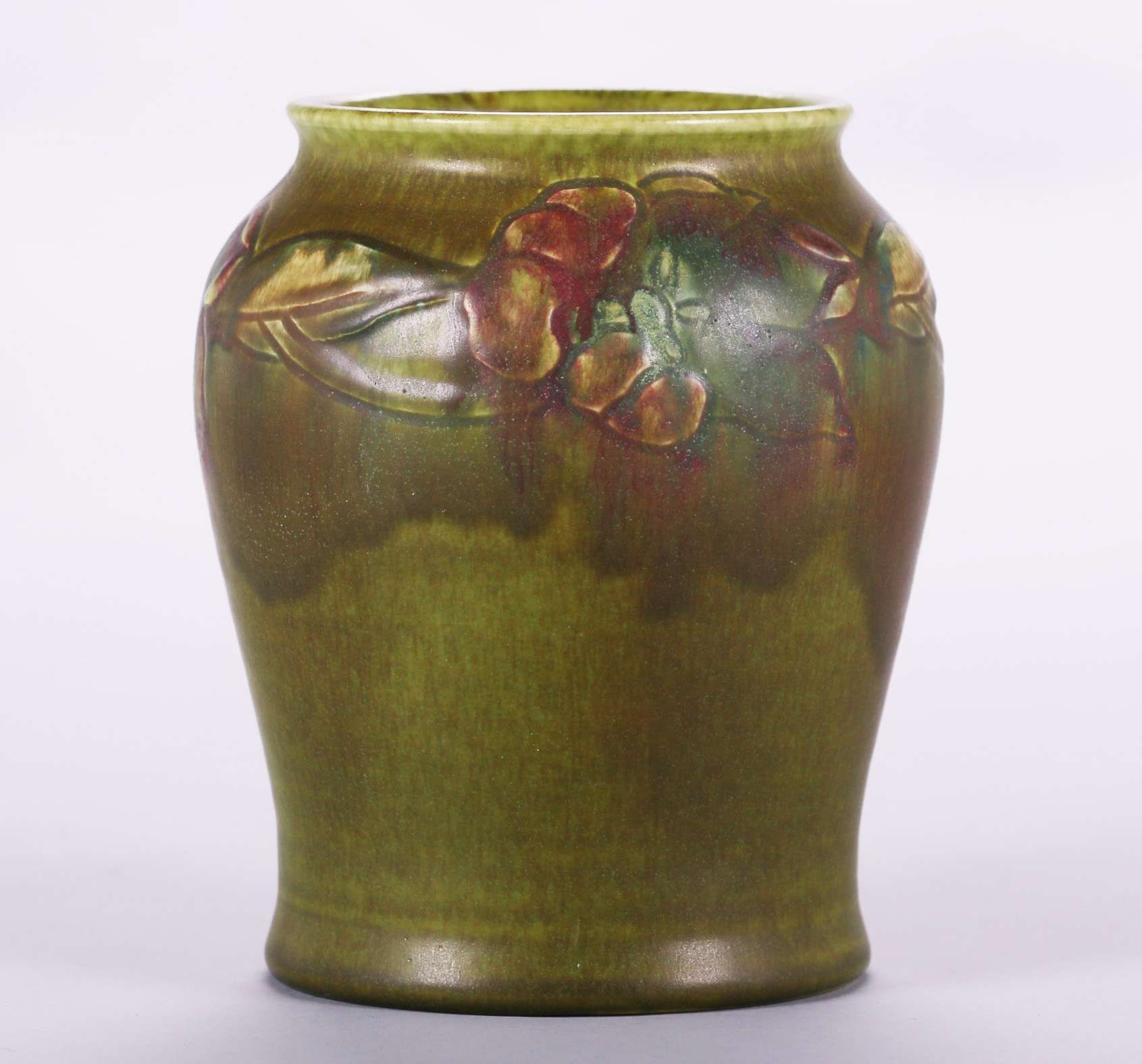 Rookwood carved matte green vase decorated by Charles S. Todd c1914. Perfect condition. 8.5"h x 7"d SOLD