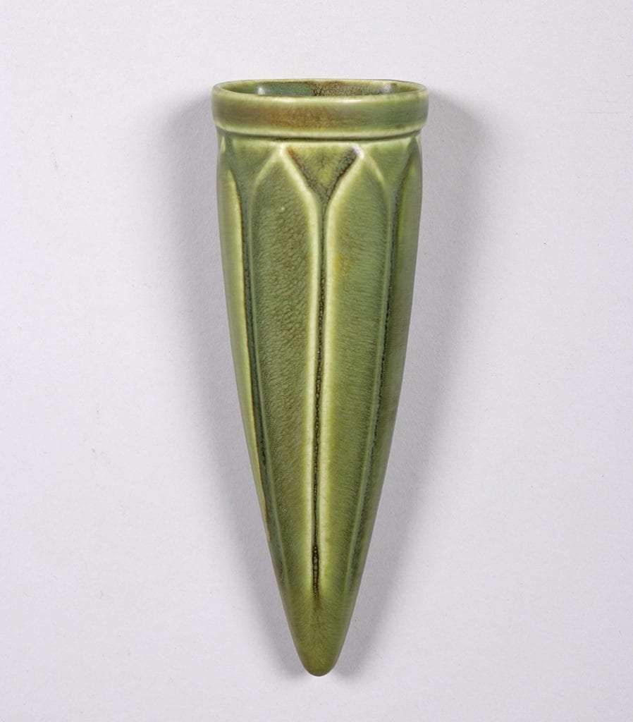 Rookwood matte green wall pocket. Dated 1924. Perfect condition. 7.5"h x 2 5/8"w x 2.25"d SOLD