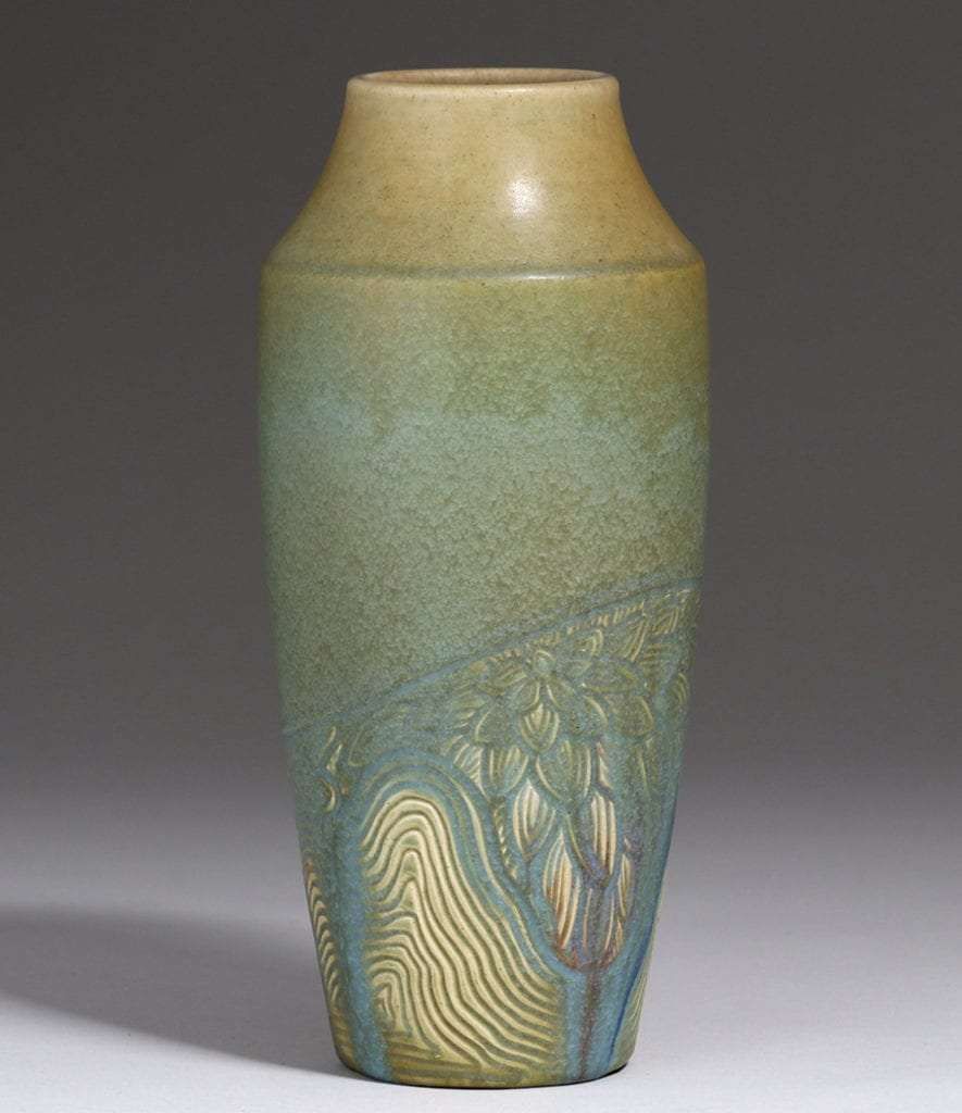 - Rookwood Matte Green & Yellow Vase William Henschell 1913