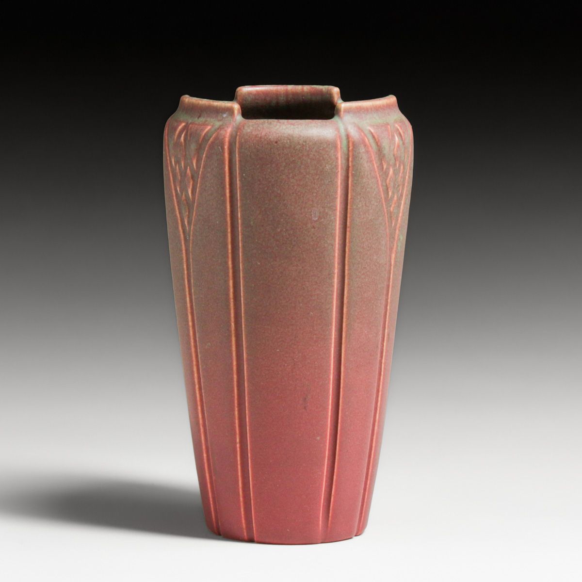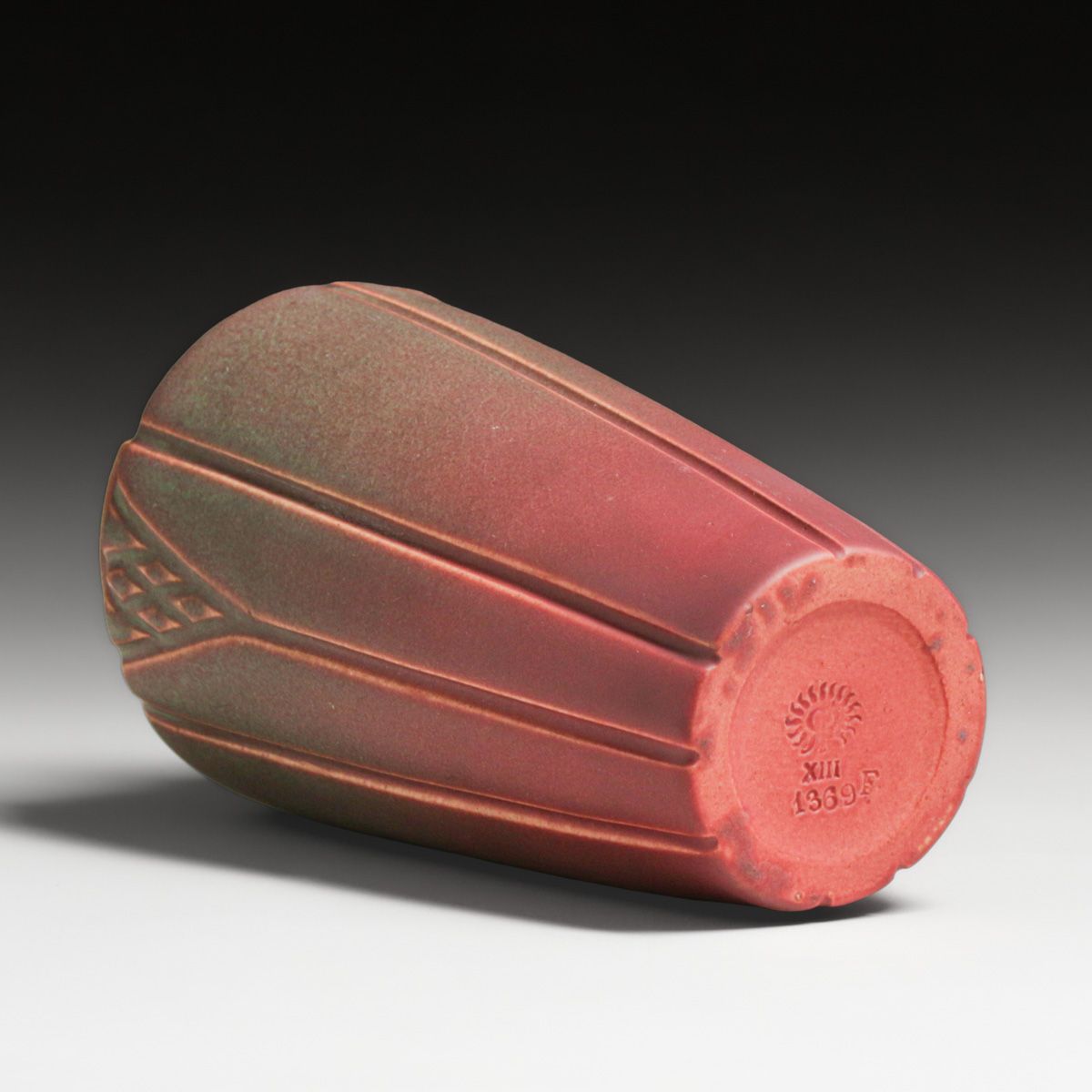 - Rookwood Pottery #1369 Matte Red Incised Vase 1913