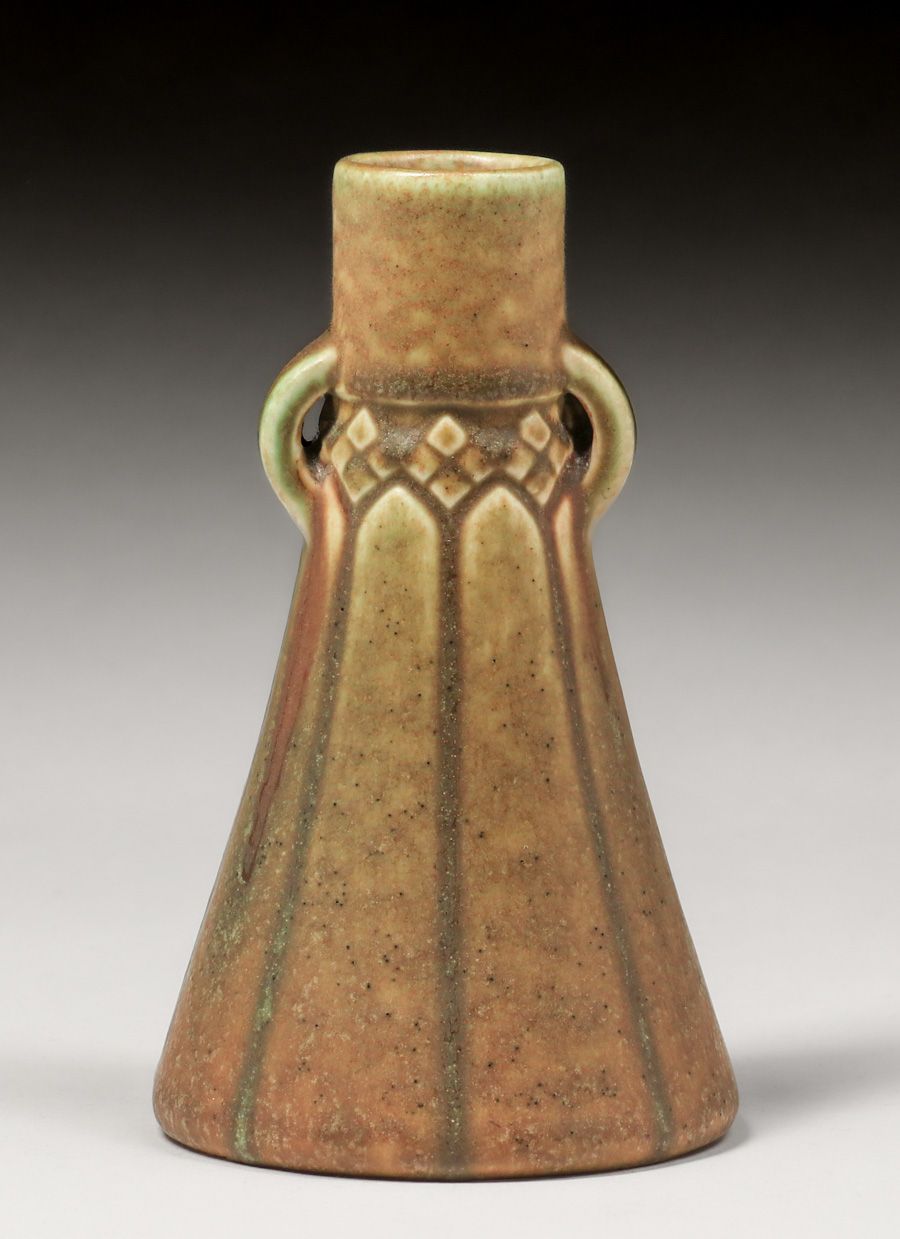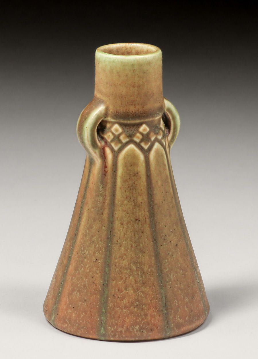 Rookwood Pottery #1698 Two-Handled Vase 1909. Signed. Several stilt pulls on interior of base. Perfect condition. 6"h x 3.5"d SOLD