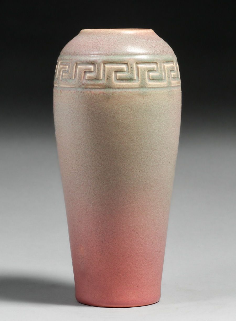 Rookwood Pottery #2033D Matte Green over Pink Vase 1912. Signed. Perfect condition. 10"h x 4.25"d SOLD