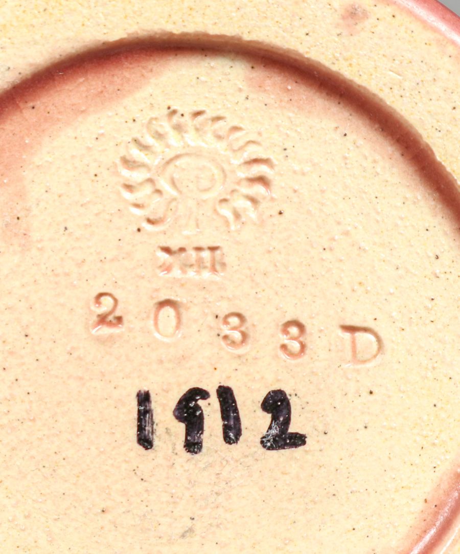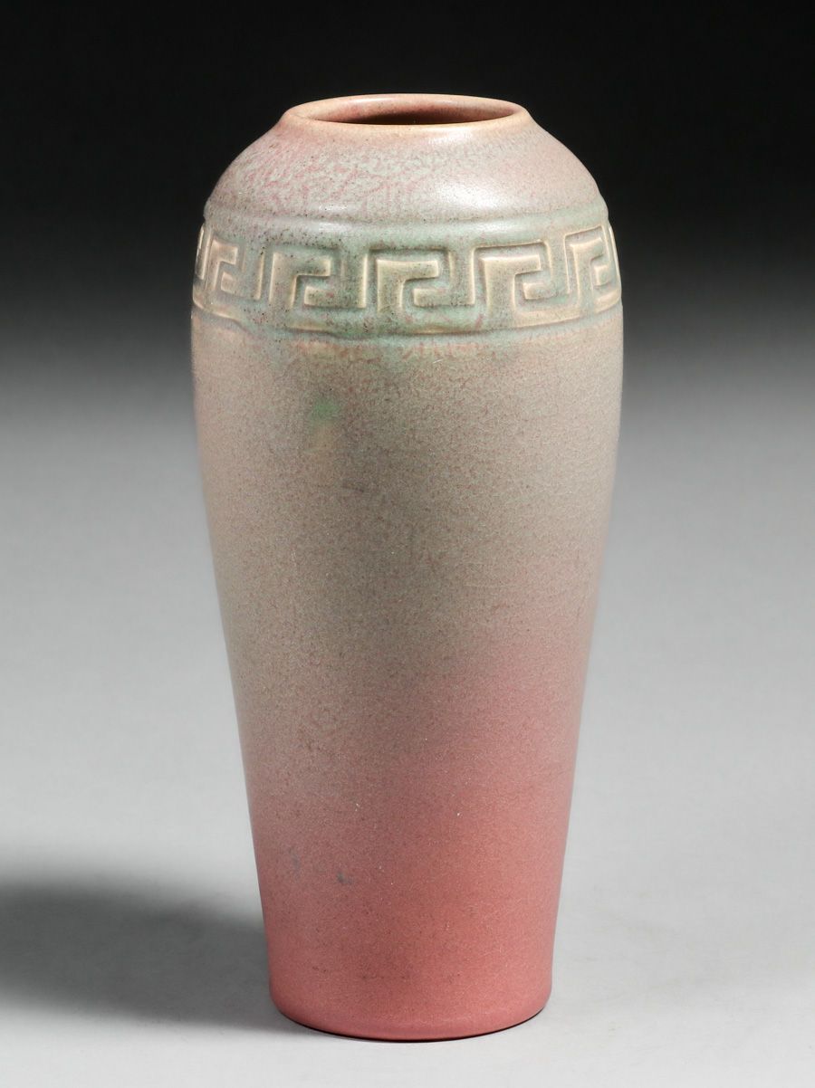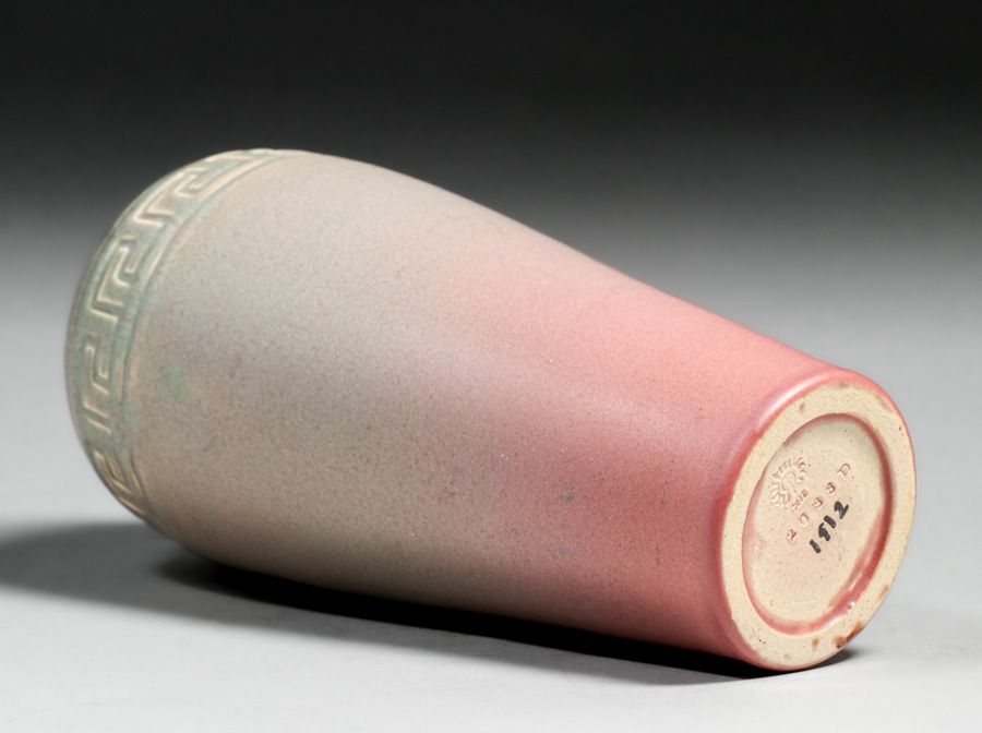 - Rookwood Pottery #2033D Matte Green over Pink Vase 1912