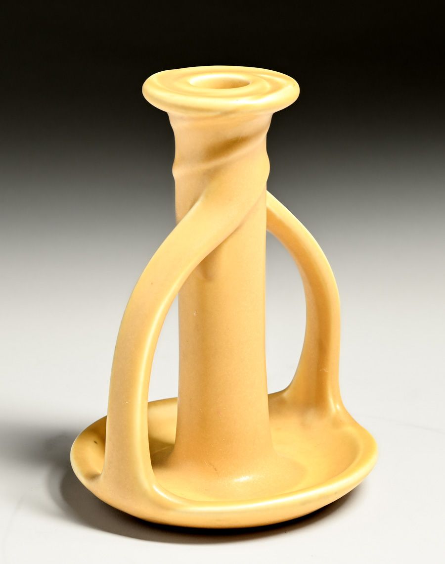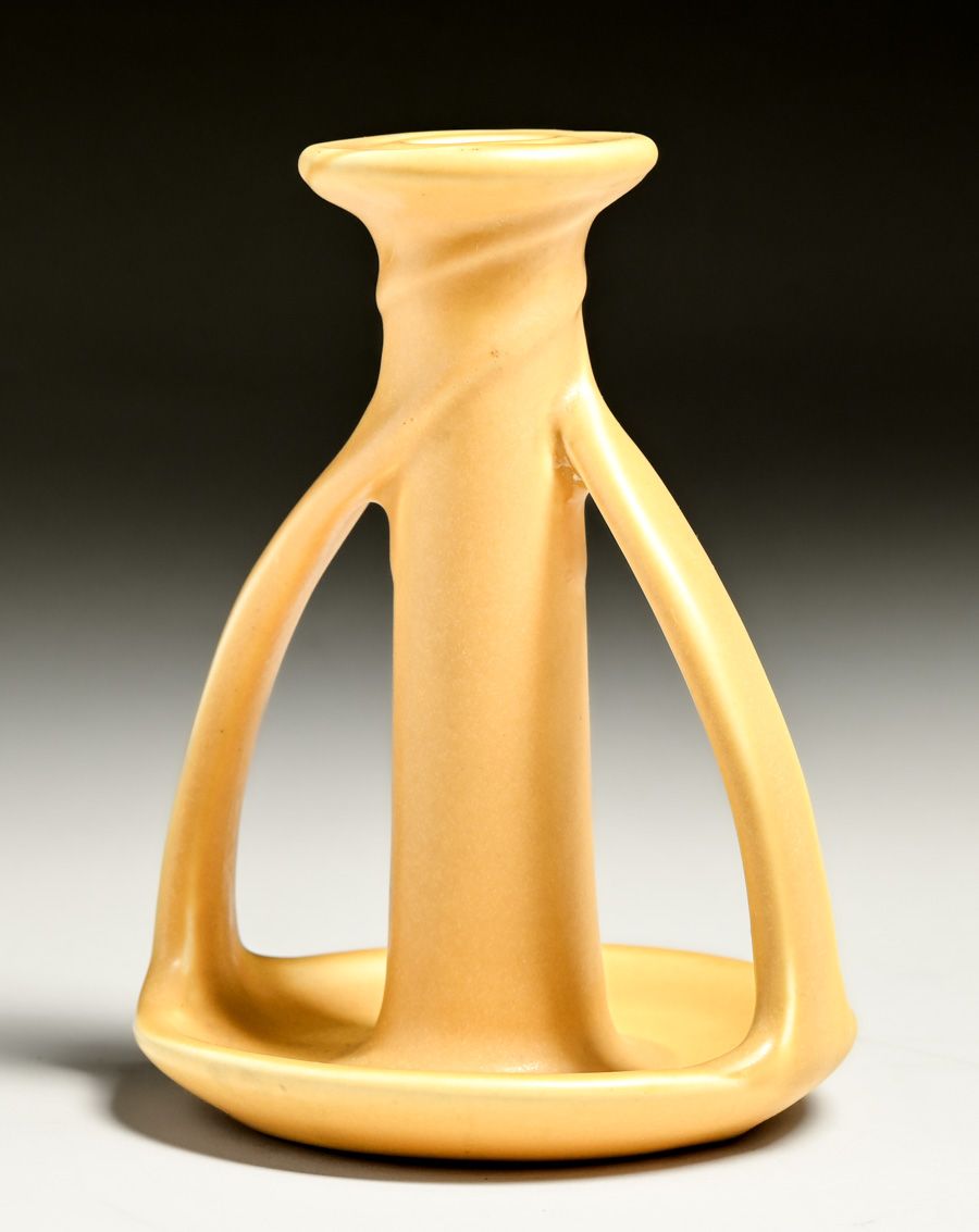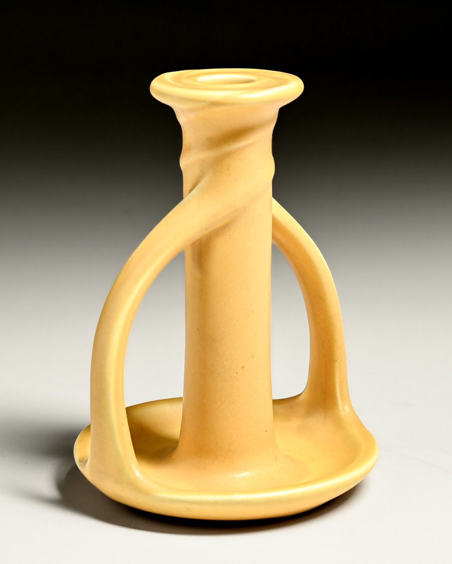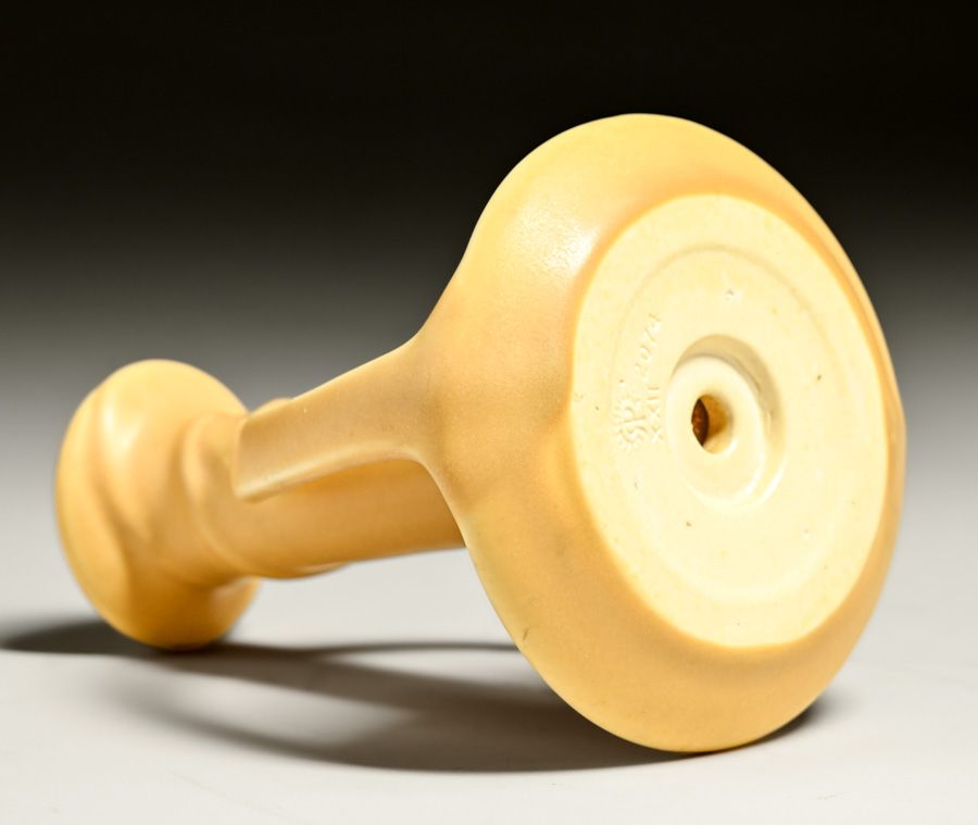 - Rookwood Pottery #2074 Matte Yellow Two-Handled Candlestick 1922