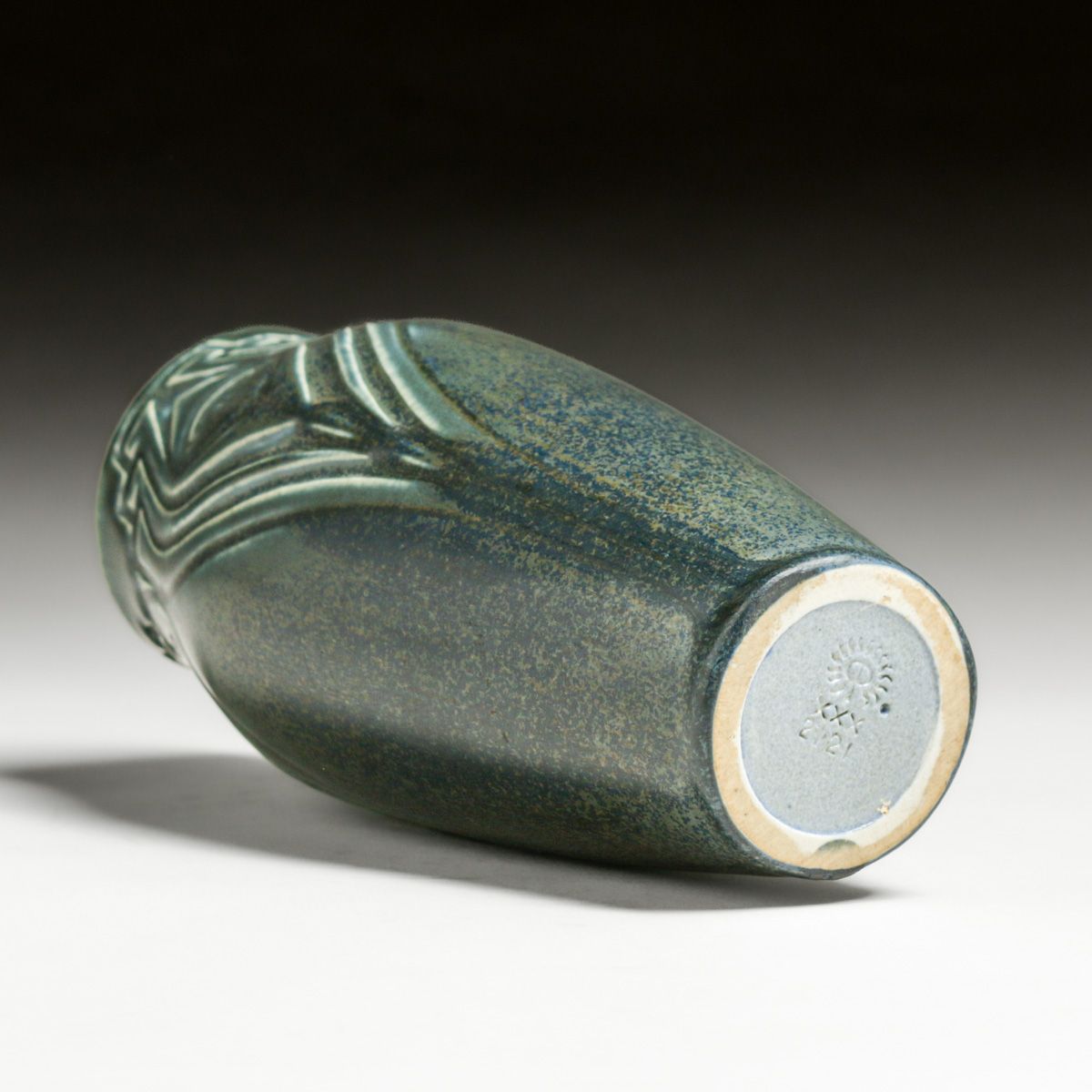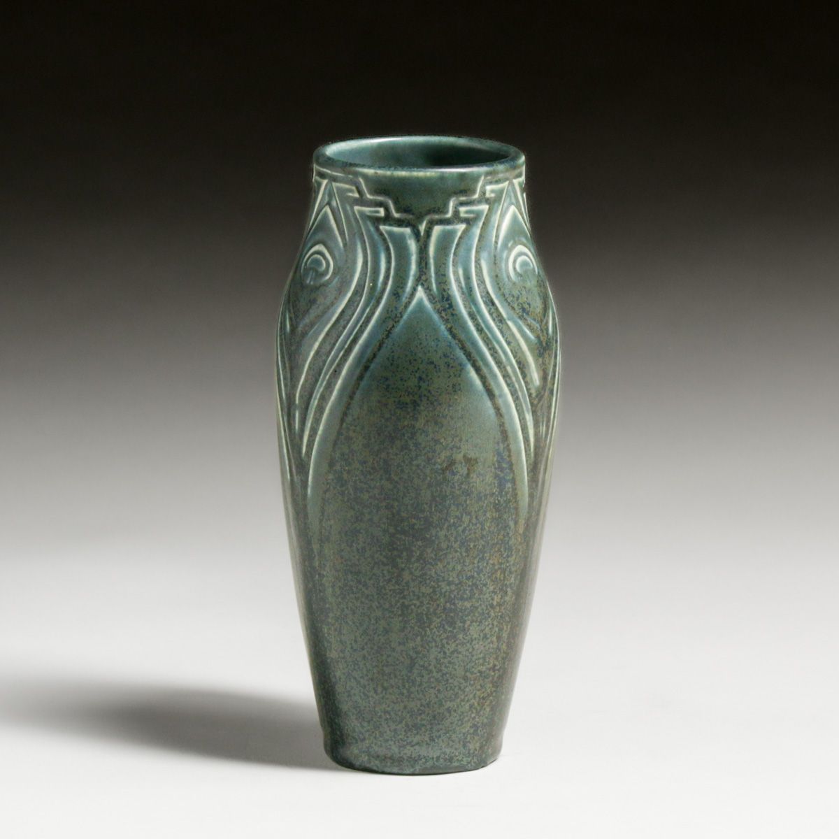 - Rookwood Pottery #2121 Matte Blue Peacock Feather Vase 1930