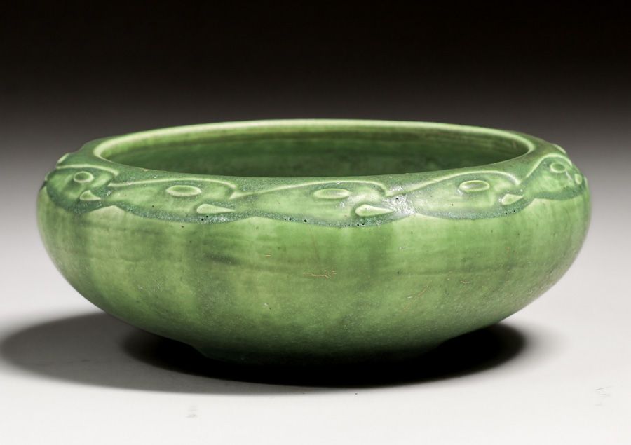 Rookwood Pottery #2157 Matte Green Bowl 1916. Signed. Some minor staining to interior, otherwise perfect condition. 8"d x 3"h SOLD