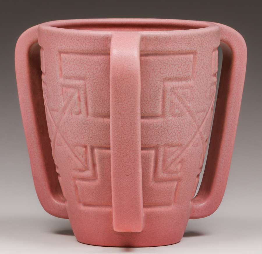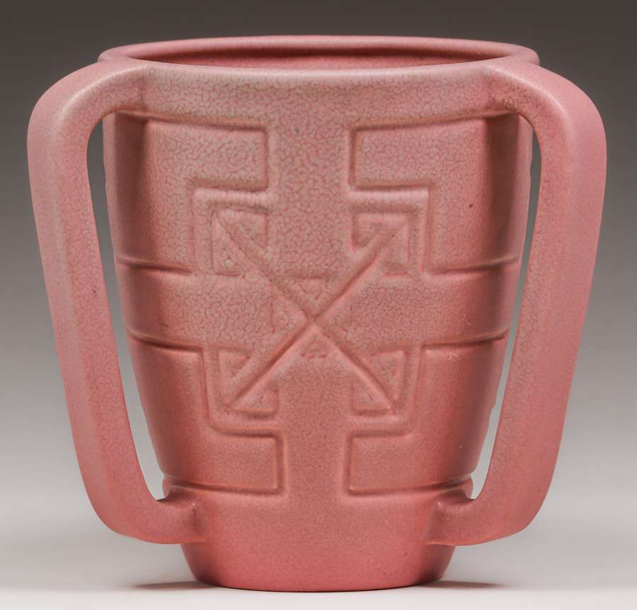 - Rookwood Pottery #2224 Matte Pink Three-Handled Vase 1921