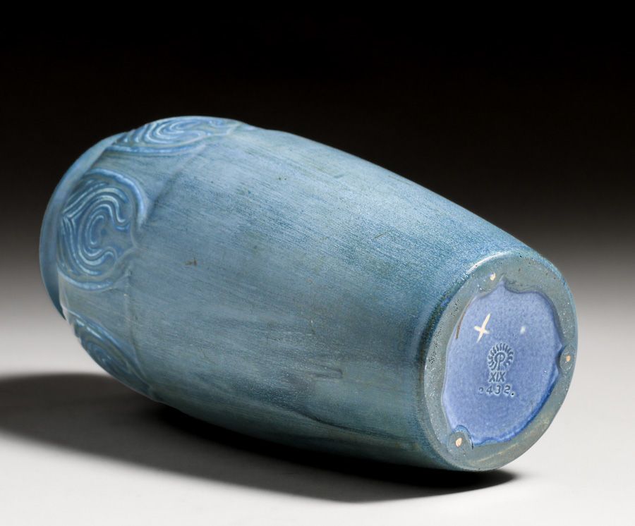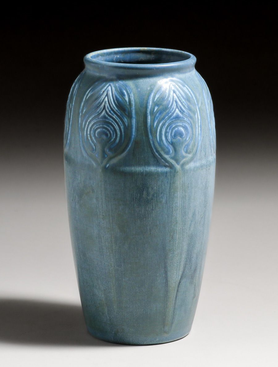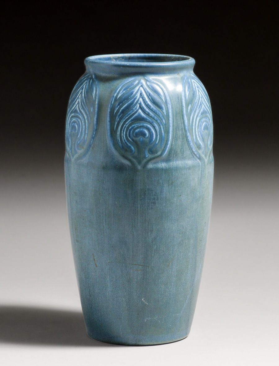 Rookwood Pottery #2432 Matte Blue Peacock Feather Vase 1919. Signed. Perfect condition. 9.25"h x 4.25"d SOLD