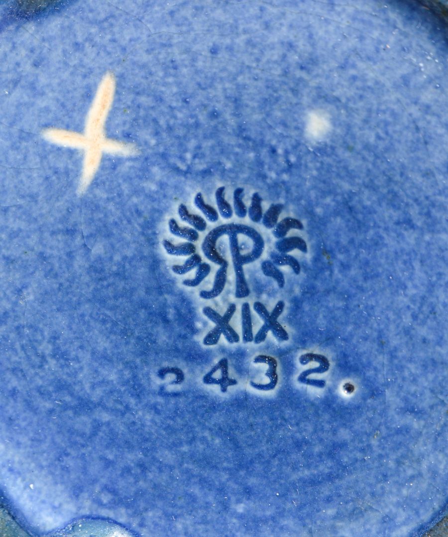- Rookwood Pottery #2432 Matte Blue Peacock Feather Vase 1919