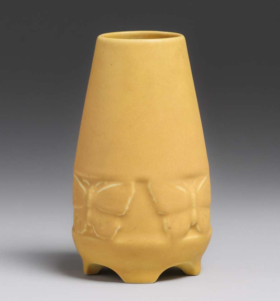 Rookwood Pottery #2702 Matte Yellow Butterfly Vase 1923. Signed. Perfect condition. 5 7/8"h x 3.5"d SOLD
