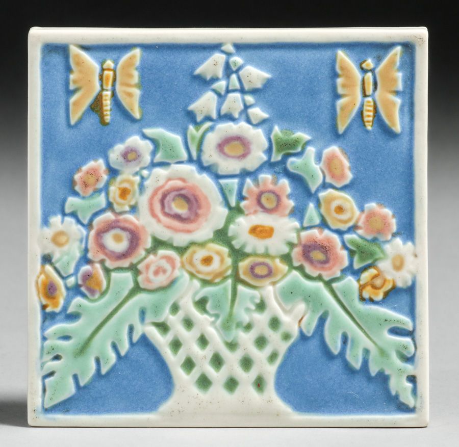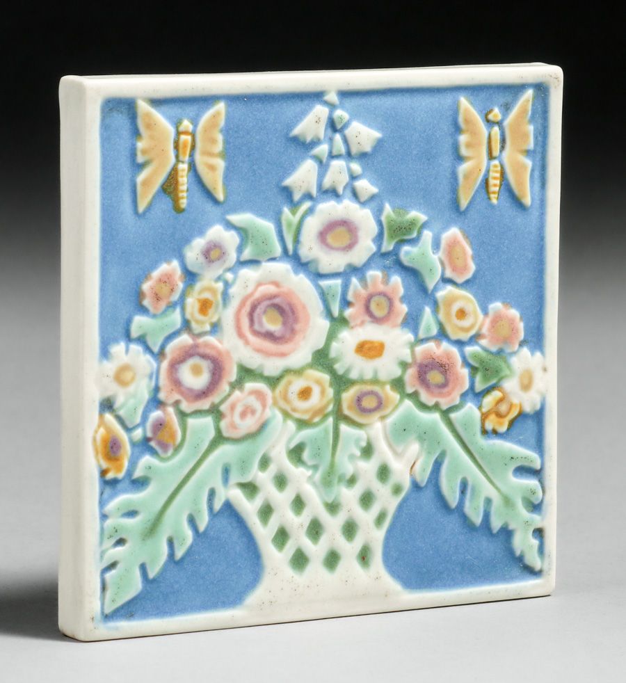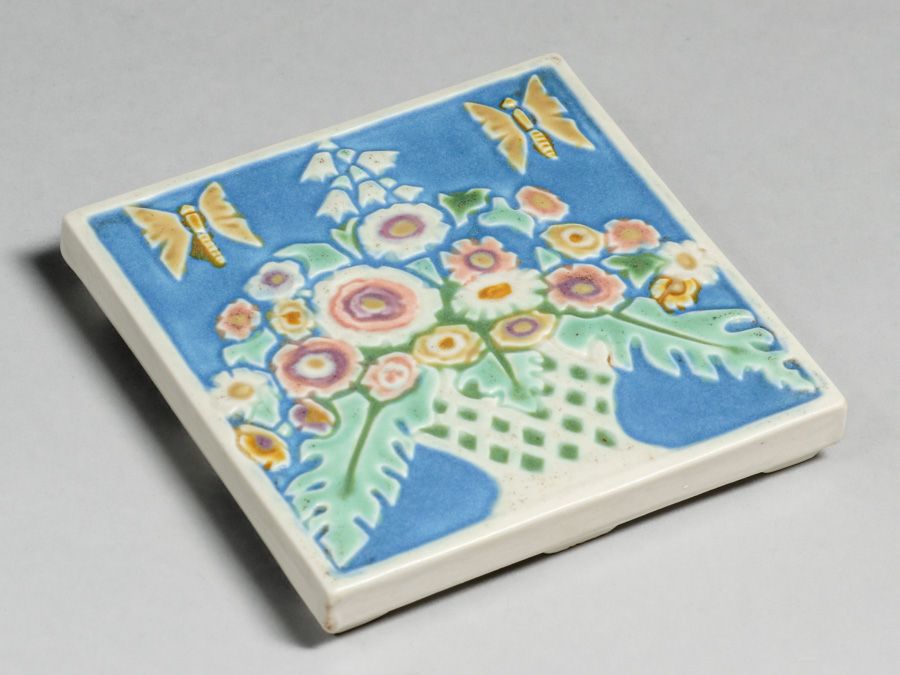 - Rookwood Pottery #3206 Butterfly Floral Trivet Tile 1925