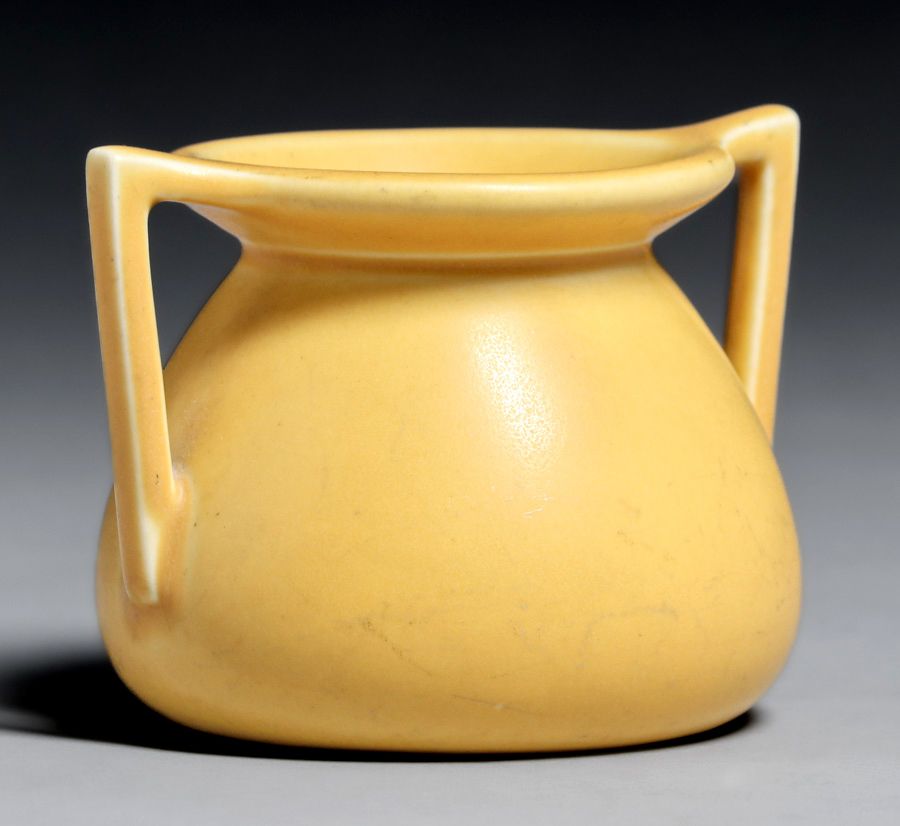 Rookwood Pottery #354 Matte Yellow Two-Handled Vase 1927. Signed. Perfect condition. 3 3/8"h x 4 5/8"w SOLD