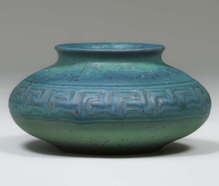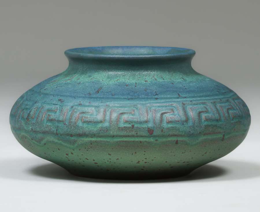 Rookwood Pottery #494 Matte Green Squat Vase 1909. Perfect condition. 8.25"d x 4.25"h SOLD
