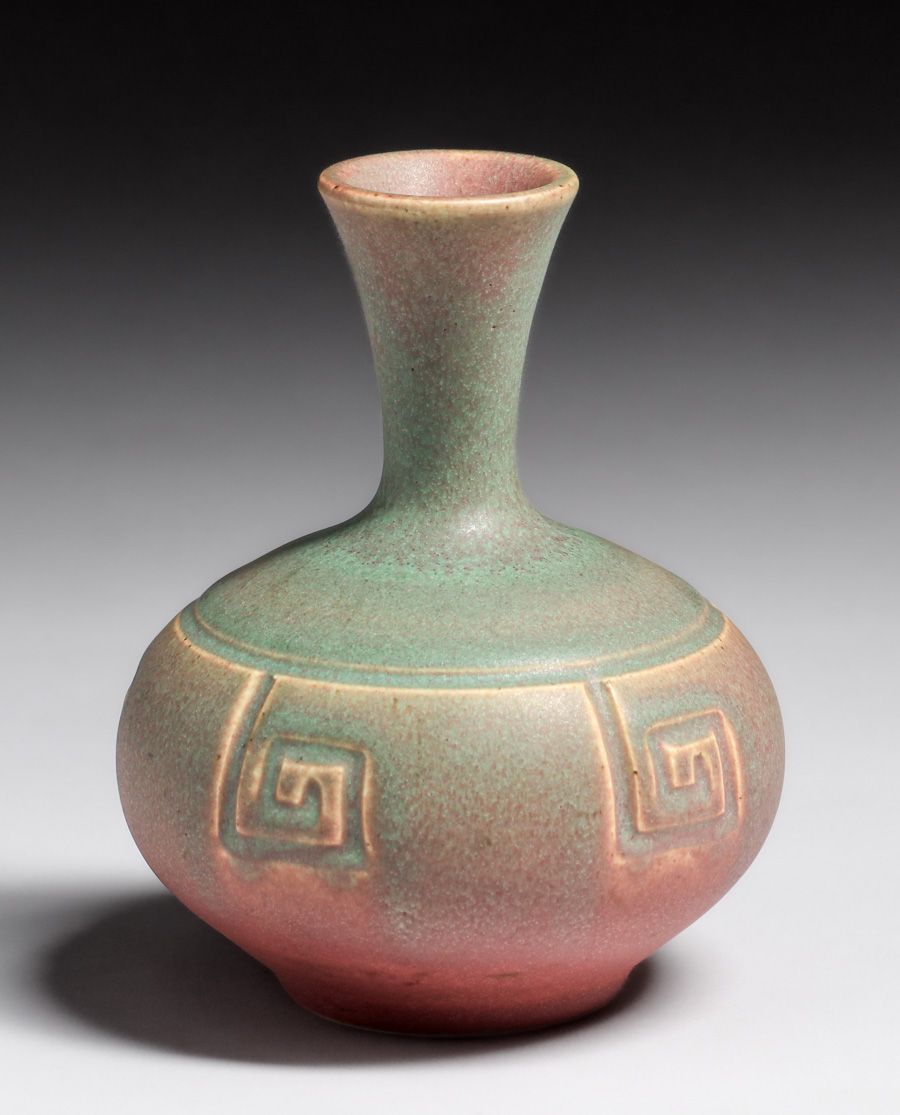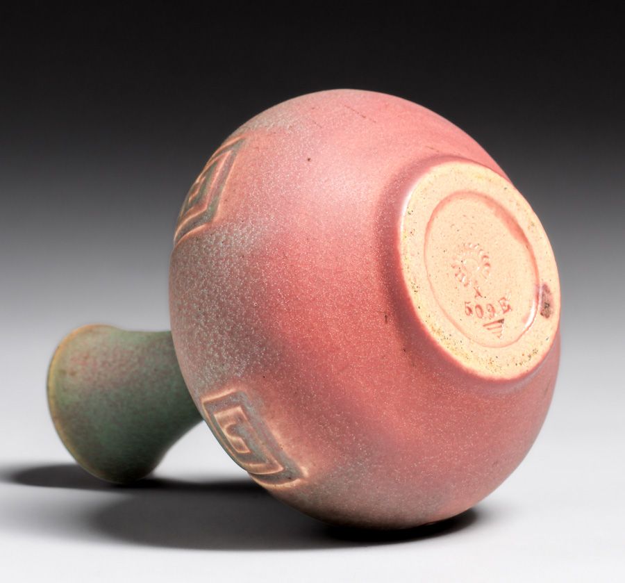 Rookwood Pottery #509 Pink & Green Vase 1910. Signed. Perfect condition. 5"h x 4.25"d SOLD