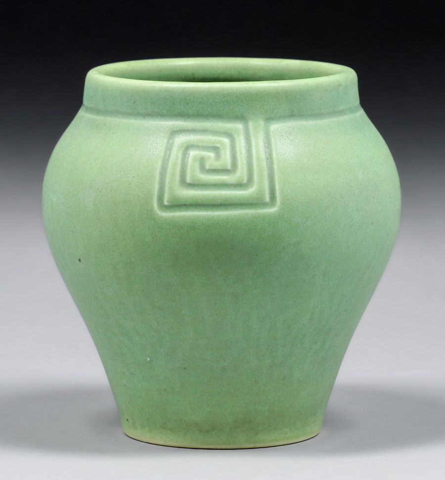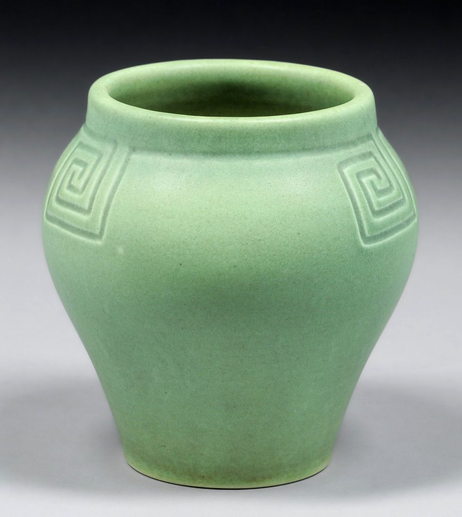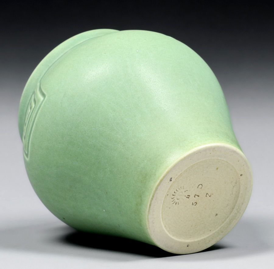 Rookwood Pottery #57D Matte Green Z-Line Vase 1902. Signed. Perfect condition. 5.25"h x 5"d SOLD