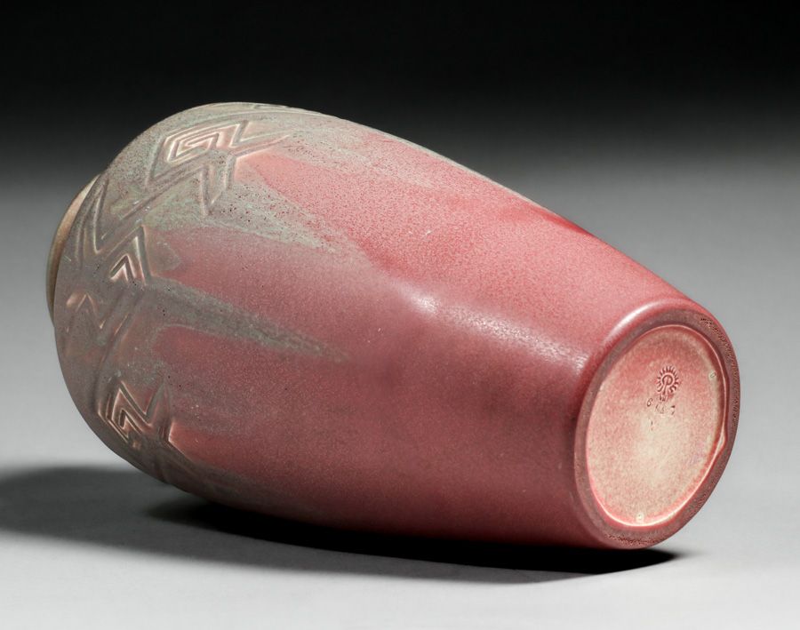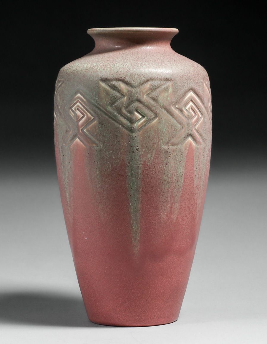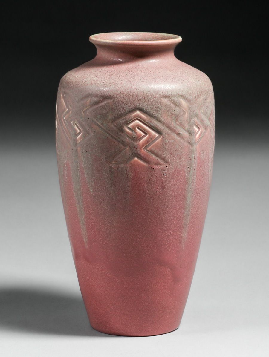 Rookwood Pottery #614C Incised Drip over Matte Pink Vase 1907. Signed. Perfect condition. 12.25"h x 6"d SOLD