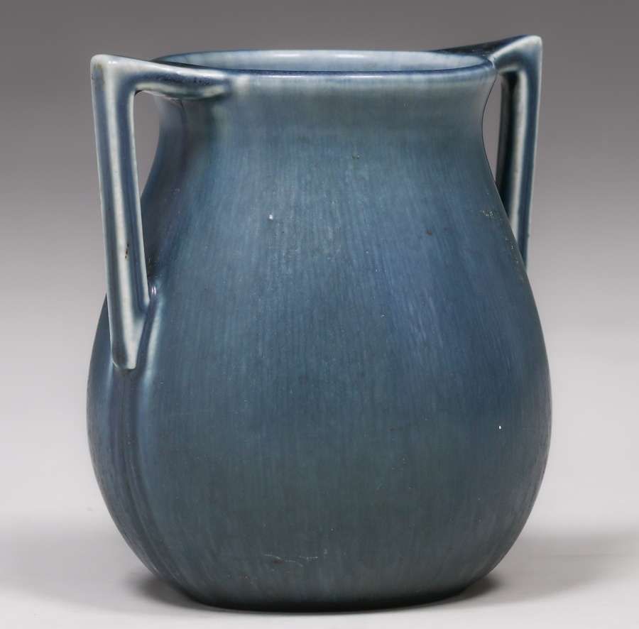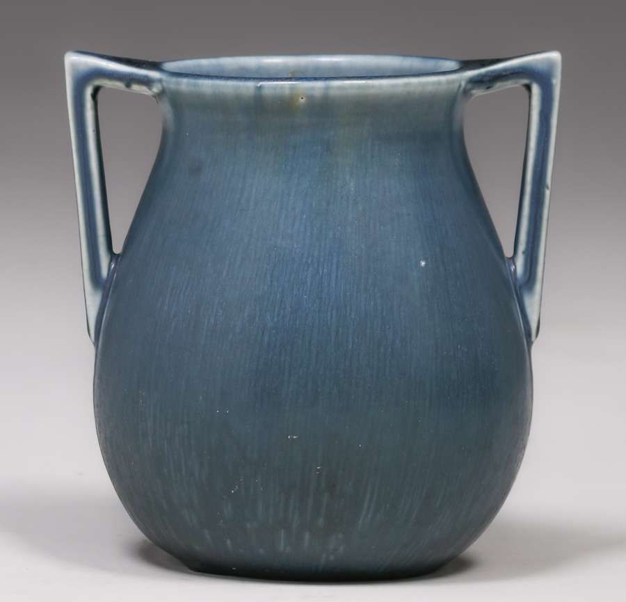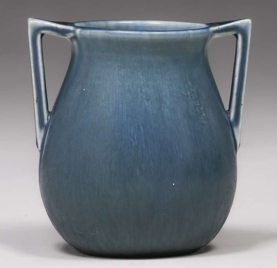 - Rookwood Pottery #63 Matte Blue Two-Handled Vase 1927