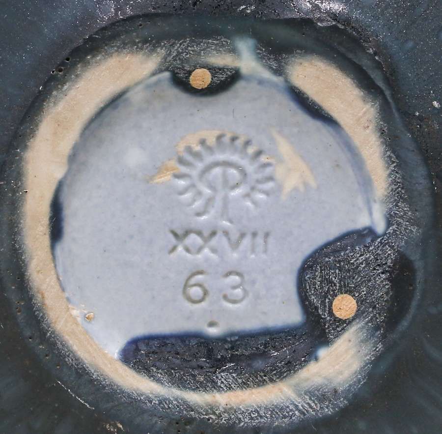 Rookwood Pottery #63 Matte Blue Two-Handled Vase 1927. Signed. Perfect condition. 4.5"h x 4.25"w SOLD