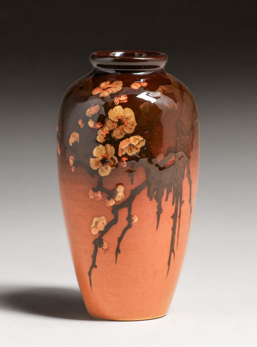 - Rookwood Pottery Clara Linderman Cherry Blossom Standard Glaze Vase 1907