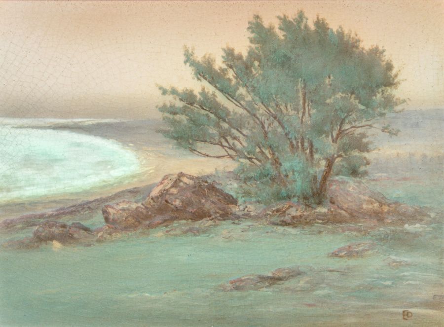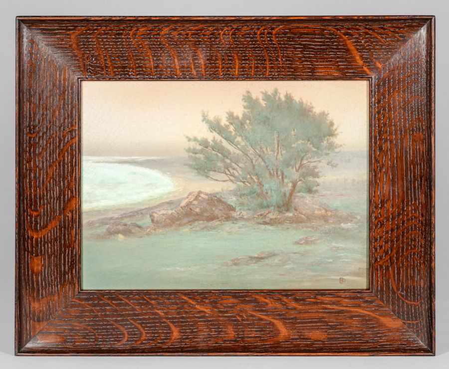 Rookwood Pottery Ed Diers Scenic Plaque 1914. Tim Holton custom oak frame. Signed. Perfect condition. 9.25"h x 12.25"w. Frame 14"h x 17"w SOLD