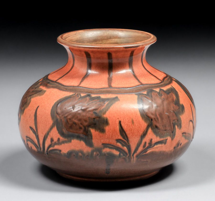 - Rookwood Pottery Elizabeth Barrett Decorated Mat Stylized Floral Vase 1928