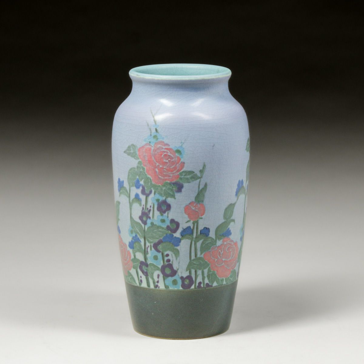 - Rookwood Pottery Elizabeth F. McDermott Vellum Decorated Wild Roses Vase 1919