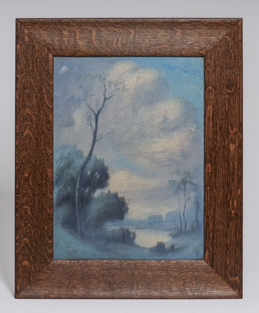 Rookwood Pottery Frederick Rothenbusch Scenic Plaque "Rolling Clouds" 1914. Signed. Perfect condition. Tim Holton custom oak frame. 12”h x 9”w. Frame 16.25”h x 13”w $5500