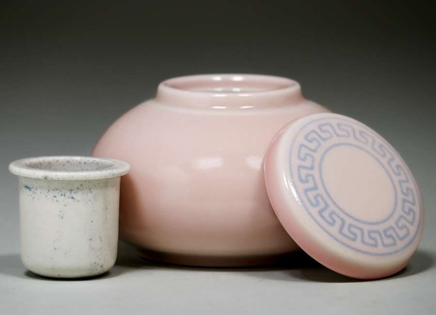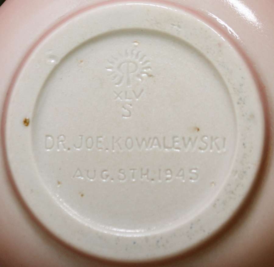 Rookwood Pottery Inkwell 1945. Marked on bottom "Dr. Joe Kowalewski". Perfect condition. 4.5"d x 3"h SOLD