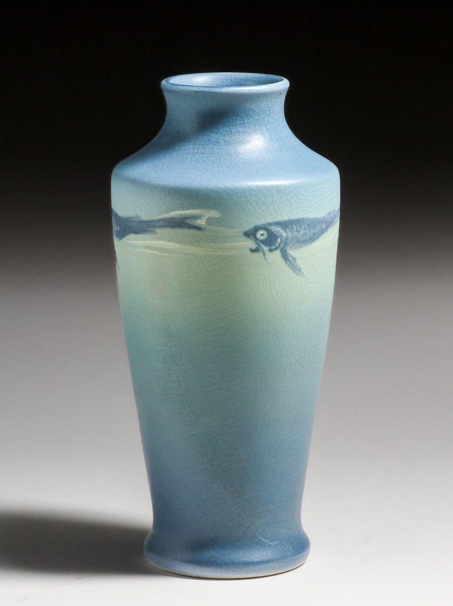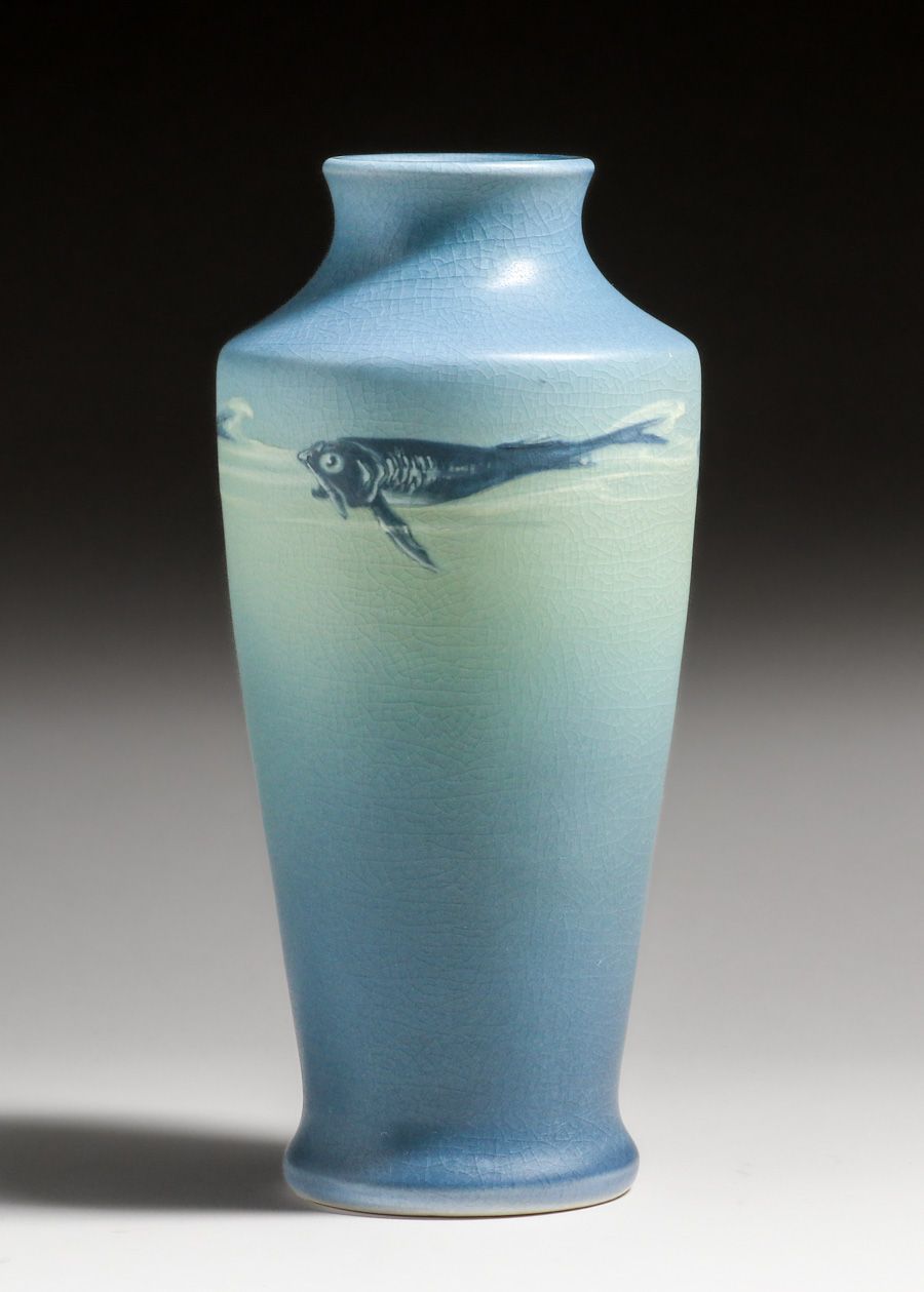 Rookwood Pottery Lorinda Epply Vellum Fish Vase 1912. Signed. Perfect condition. 9.75"h x 4.25"d $3200