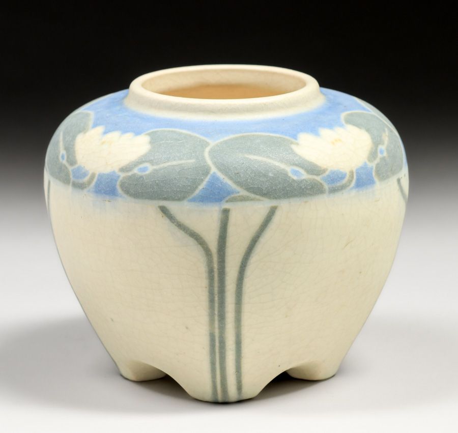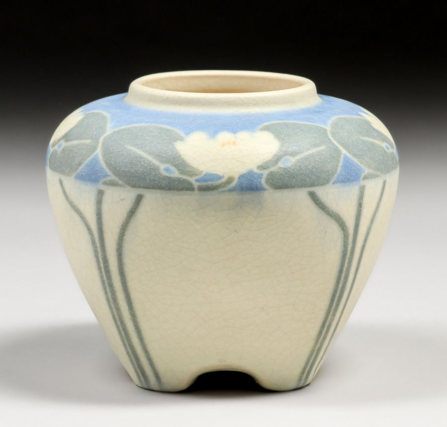 Rookwood Pottery Sara Sax Decorated Vellum Vase 1907. Signed. Perfect condition. 5.25"d x 4.5"h SOLD
