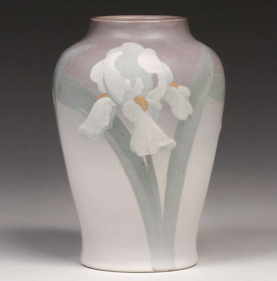 Rookwood Pottery Sara Sax Floral Vellum Vase 1904. Signed. Invisible professional restoration to small base chip, otherwise perfect condition. 8"h x 5.25"d SOLD