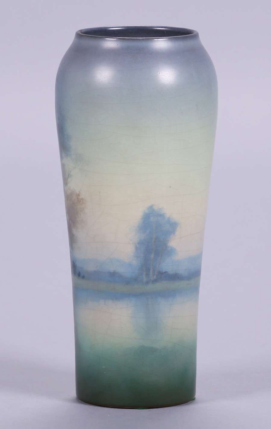 Rookwood scenic vellum vase decorated by Ed Diers c1919. Perfect condition. 9.75"h x 4"d SOLD