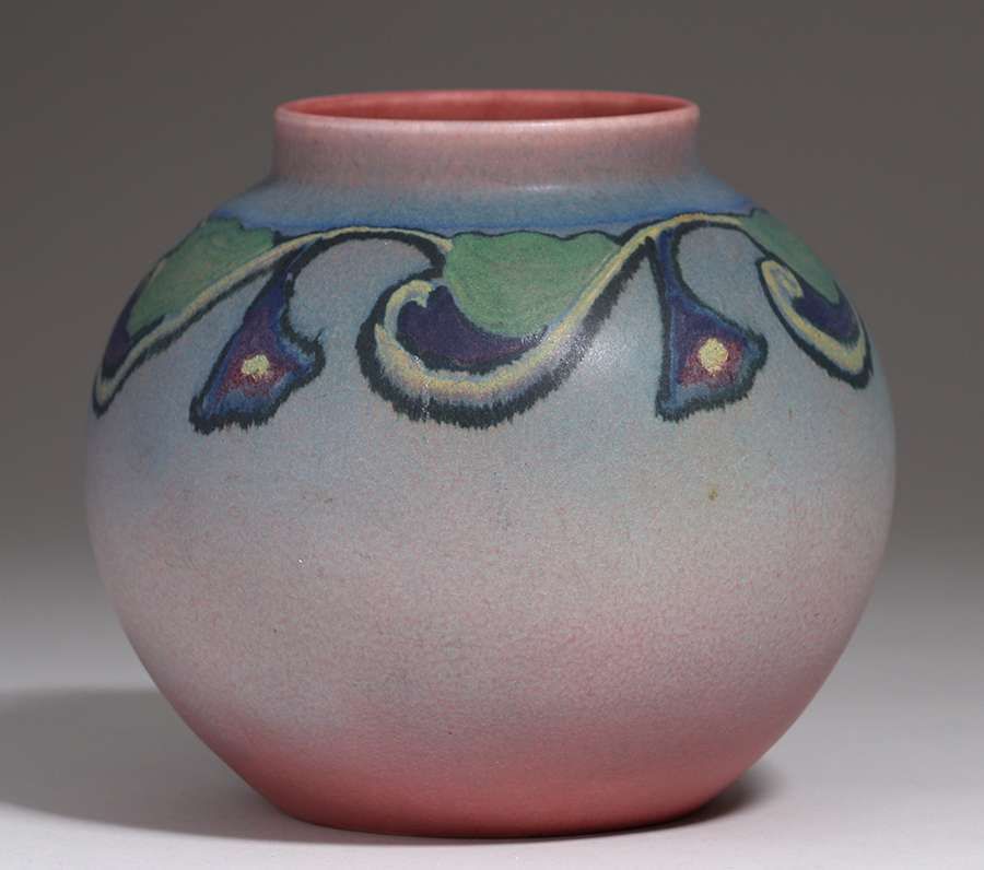 Rookwood spherical vase with stylized floral design dated 1919 decorated Charles S. Todd. 7"h x 7.5"d SOLD