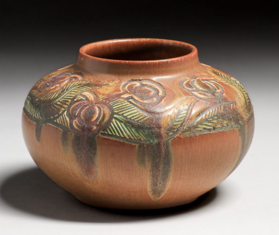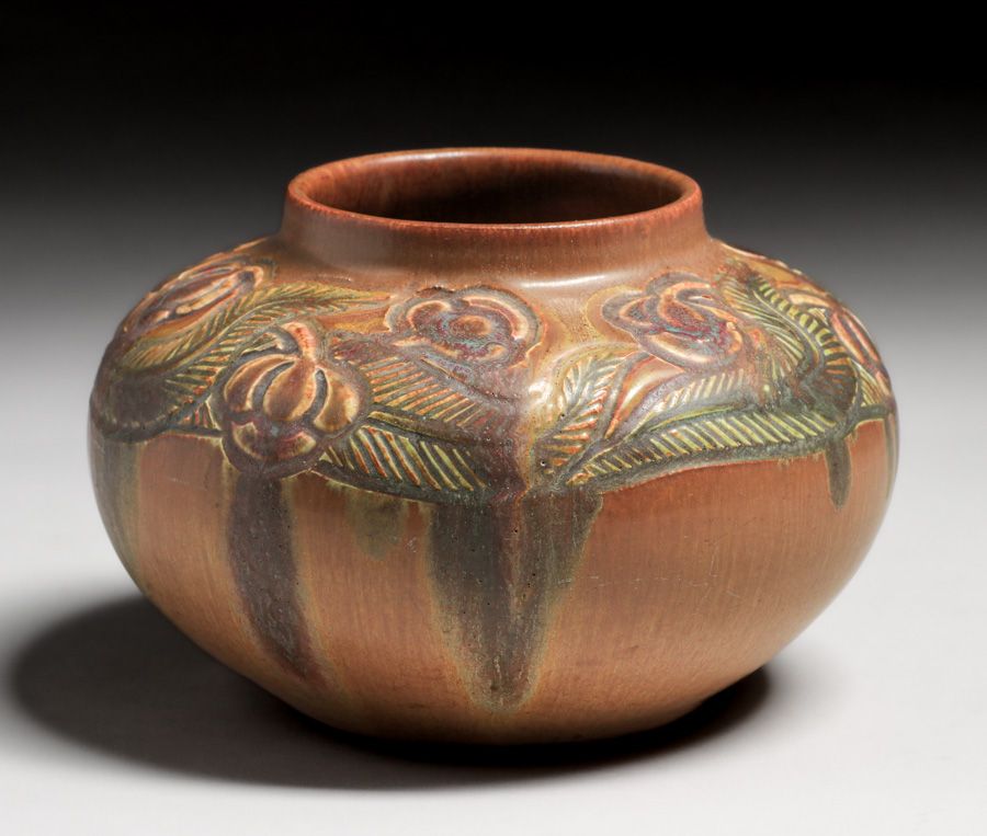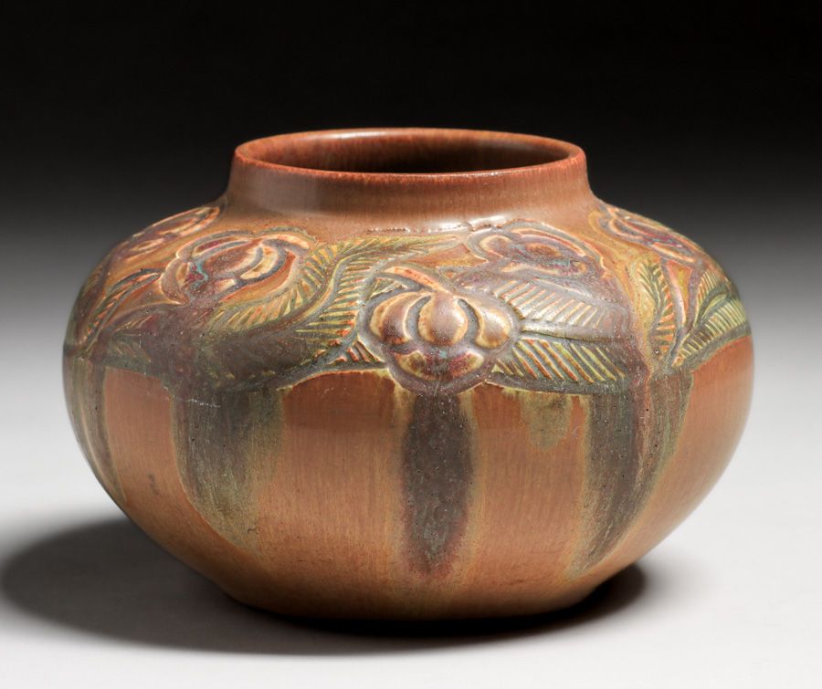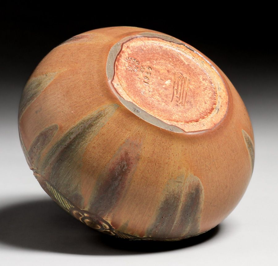 Rookwood William Hentschel Large Carved Squat Vase 1915. Signed. Perfect condition. 7"d x 4.75"h SOLD