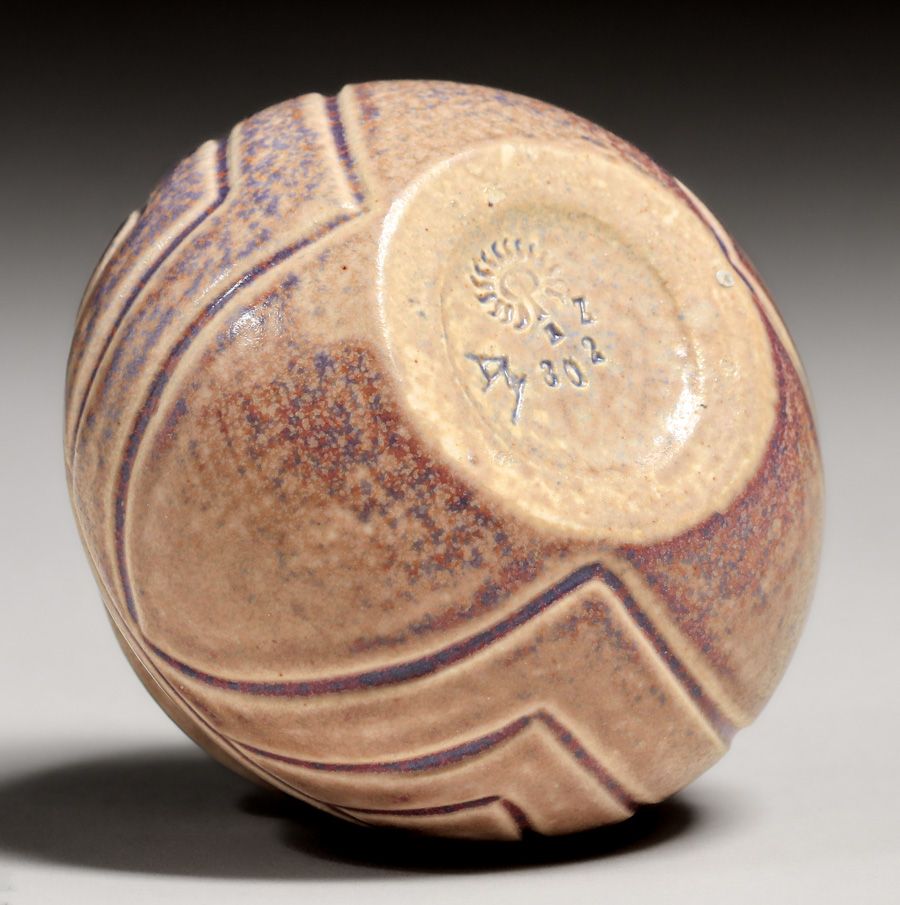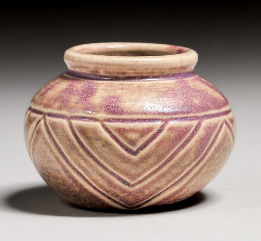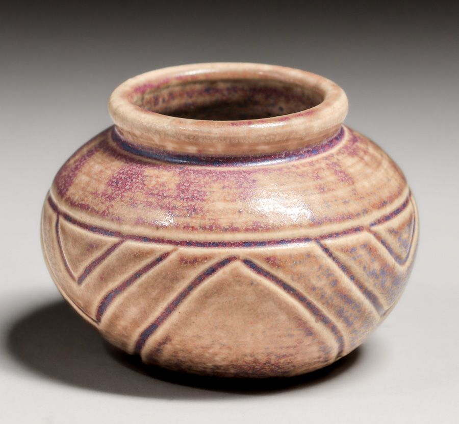 Unusual Rookwood Pottery Albert Munson Z-Line Hand-Carved Vase 1901. Signed. Perfect condition. 3.25"d x 2 3/8"h SOLD