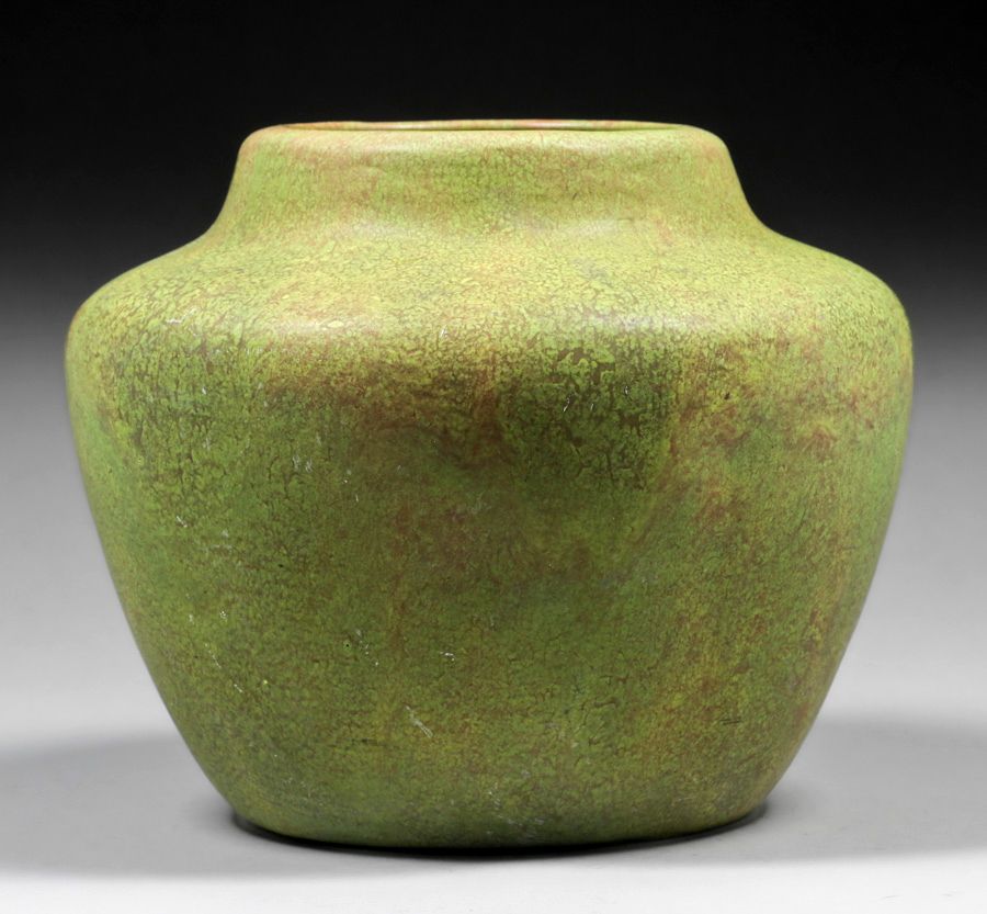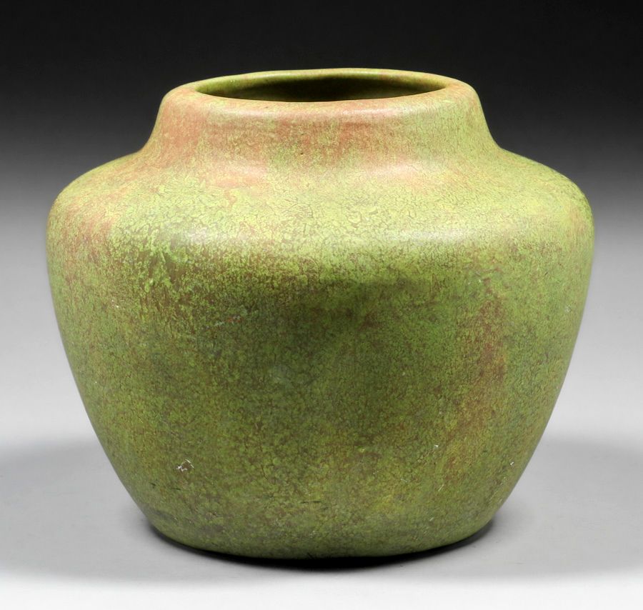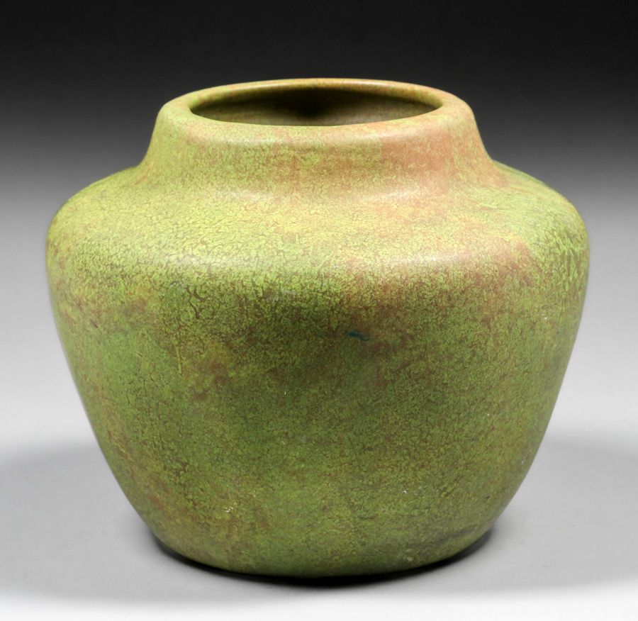 Large Roseville Early Carnelian Bulbous Vase c1910. Unsigned. Perfect condition. 8.5″h x 9.5″d SOLD