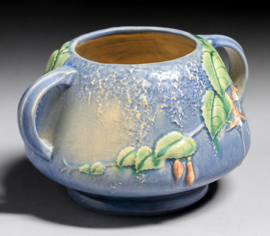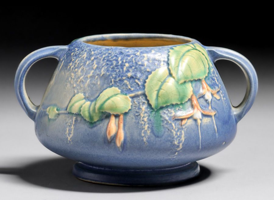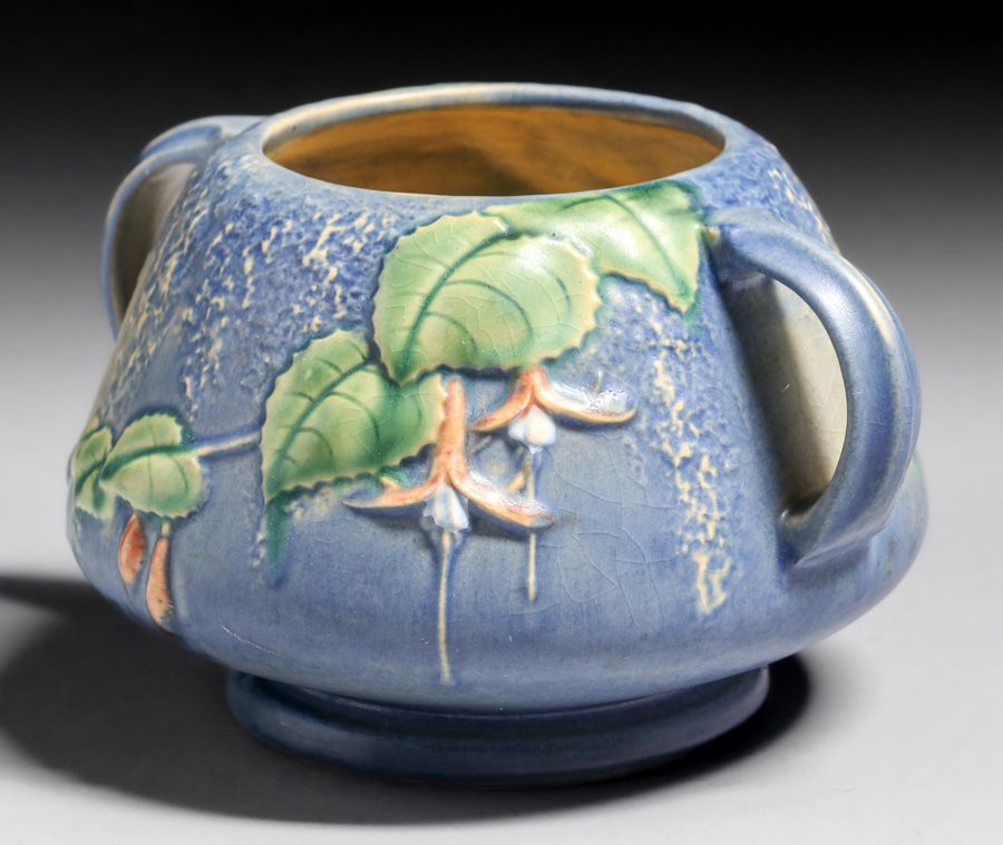- Roseville #346 Blue Fuchsia Two-Handled Vase c1930s