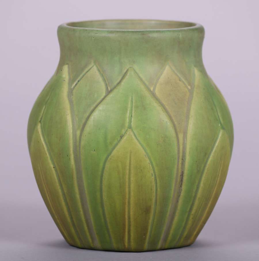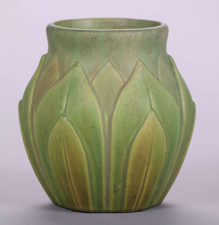 - Roseville Early Velmoss Matte Green Artichoke Vase