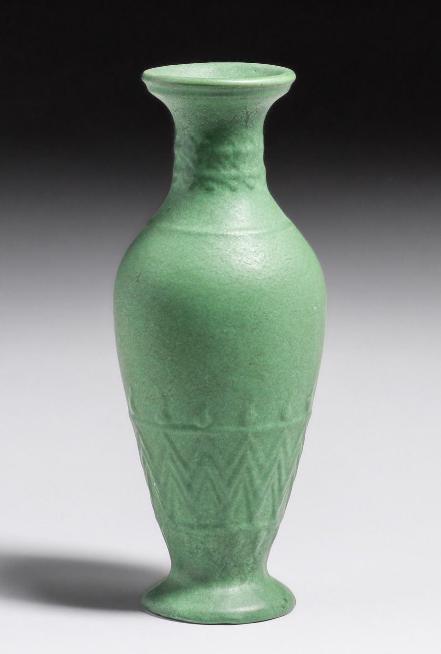 Roseville Egypto Matte Green Vase c1905. Signed. Perfect condition. 10"h x 3.25"d SOLD