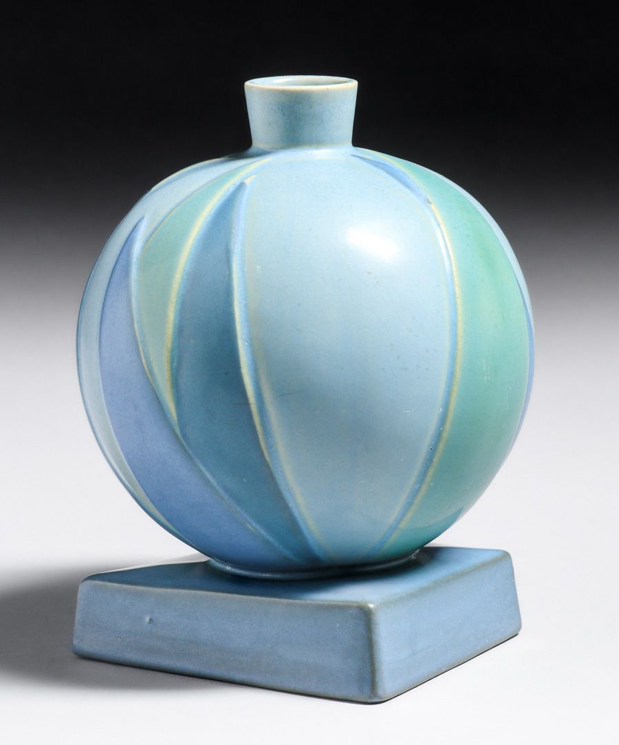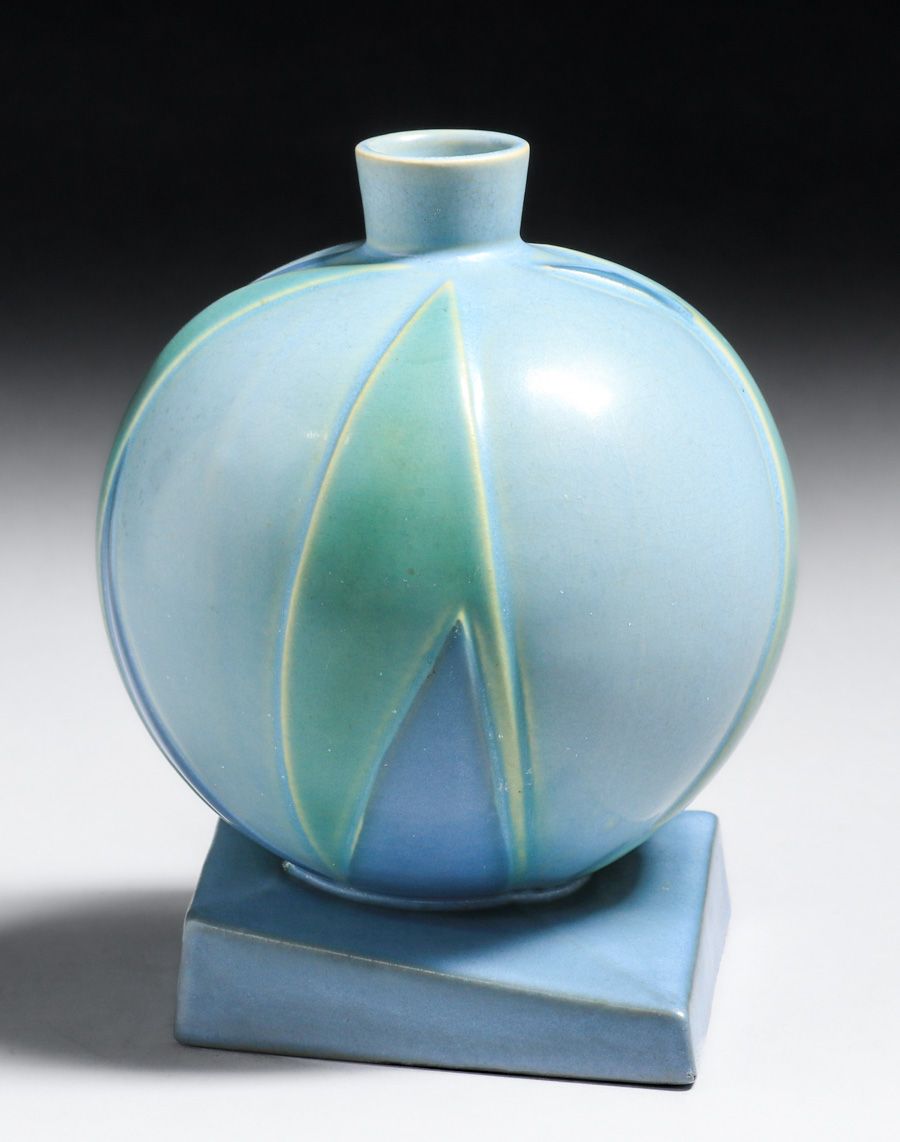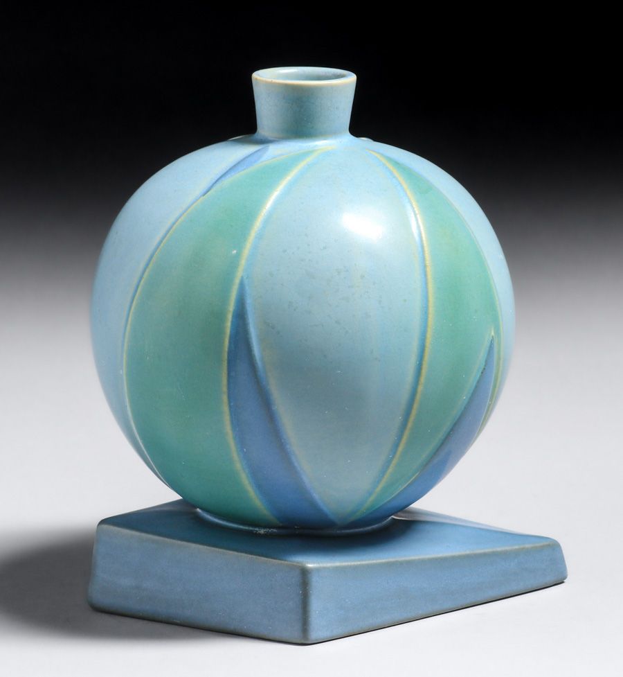 Roseville Futura Art Deco Ball Vase c1928. Unsigned. Perfect condition. 7.5"h x 4.5" x 5.5" SOLD