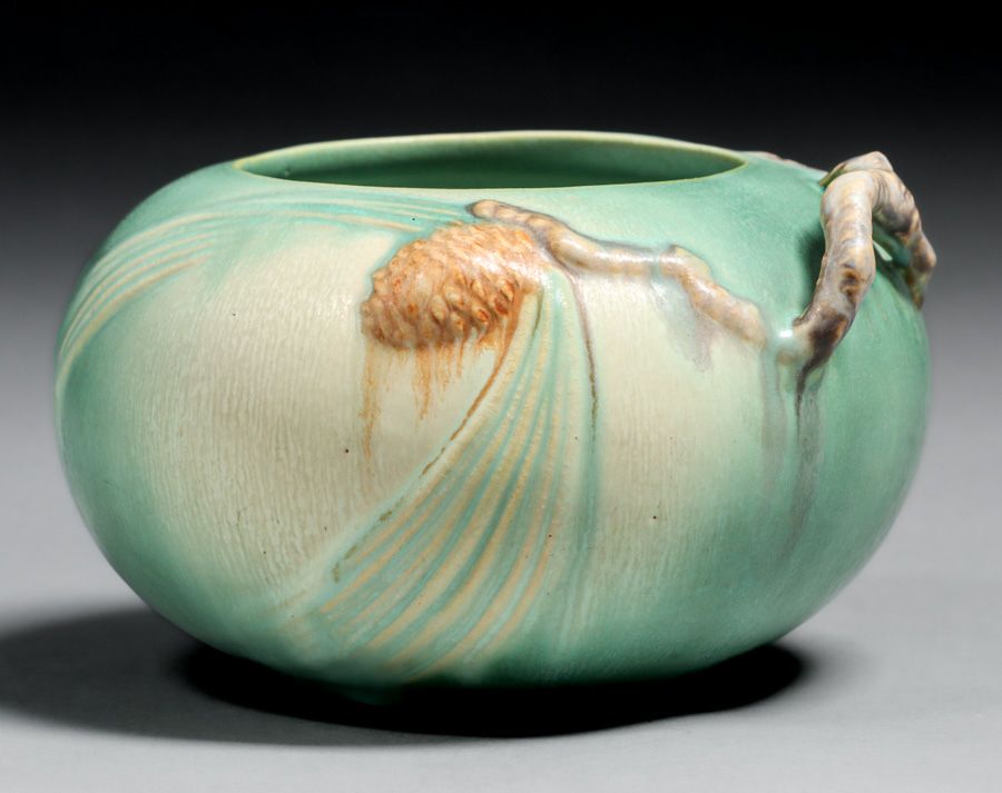 - Roseville Pottery #278 Green Pinecone Vase c1930s