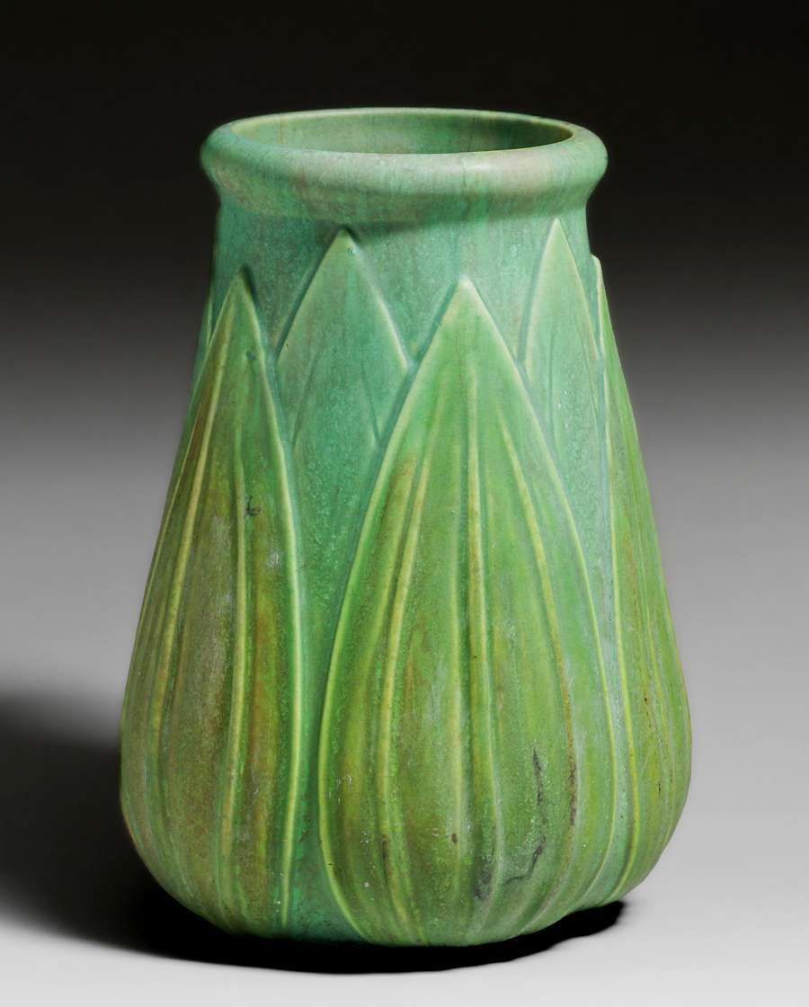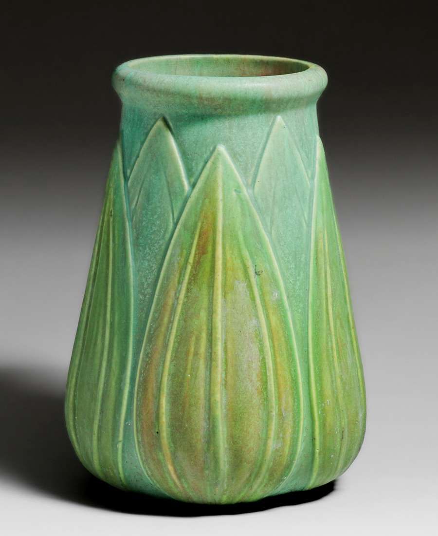 Roseville Pottery Early Velmoss Vase c1910. Unsigned. Perfect condition. 9.75"h x 6"d SOLD