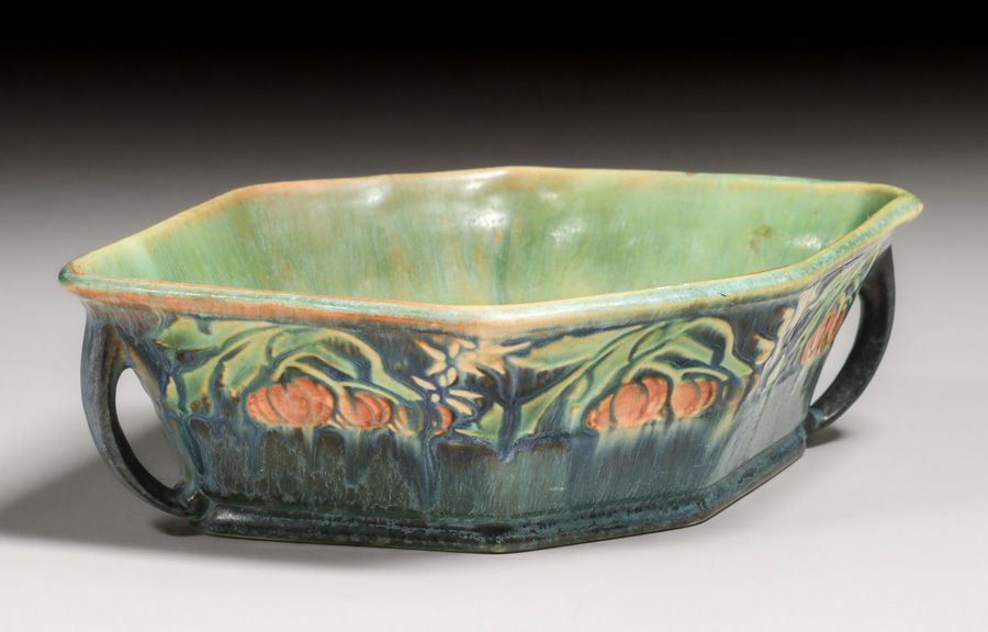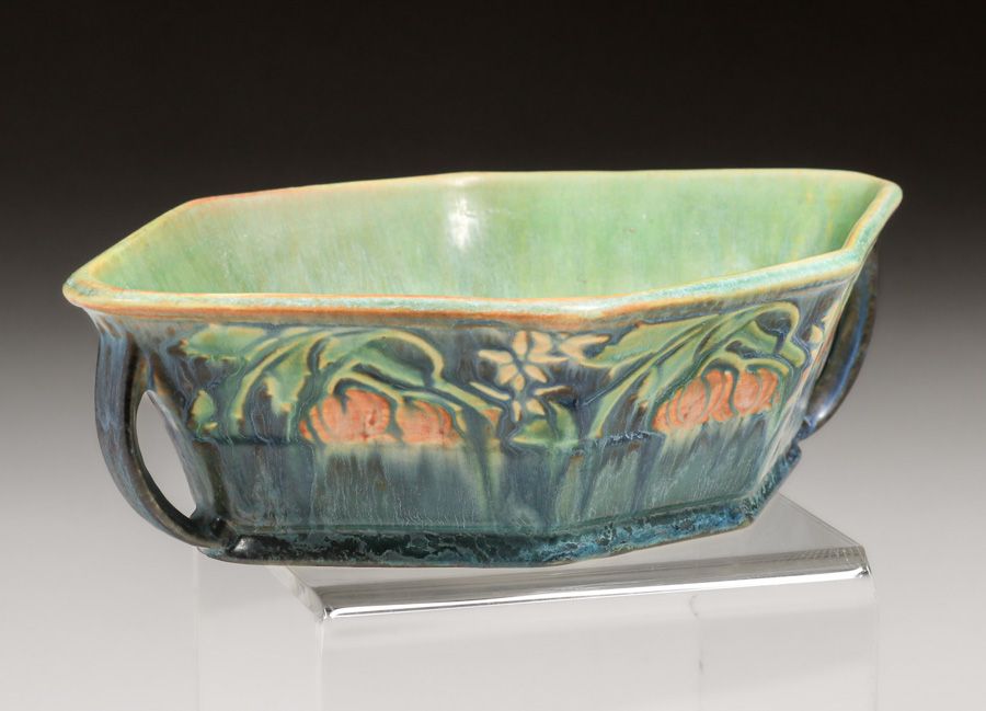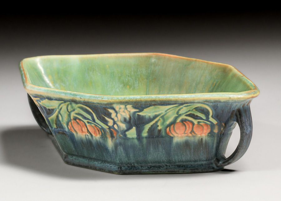 - Roseville Pottery Green Baneda Two-Handled Vase c1930s
