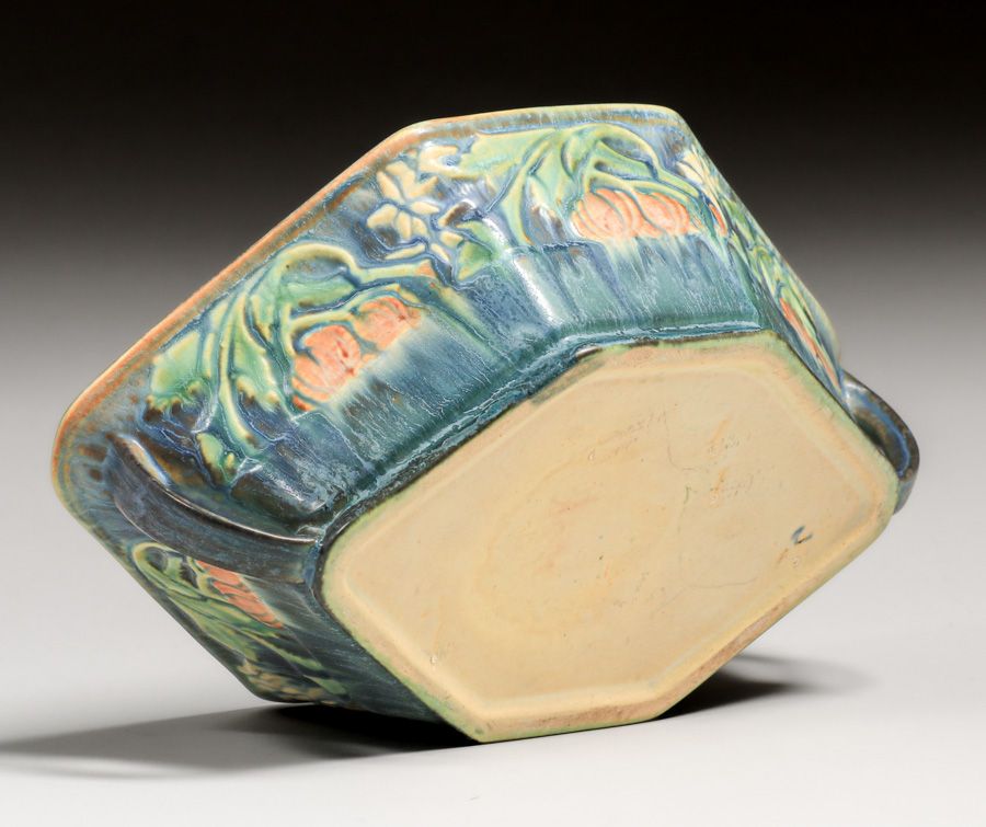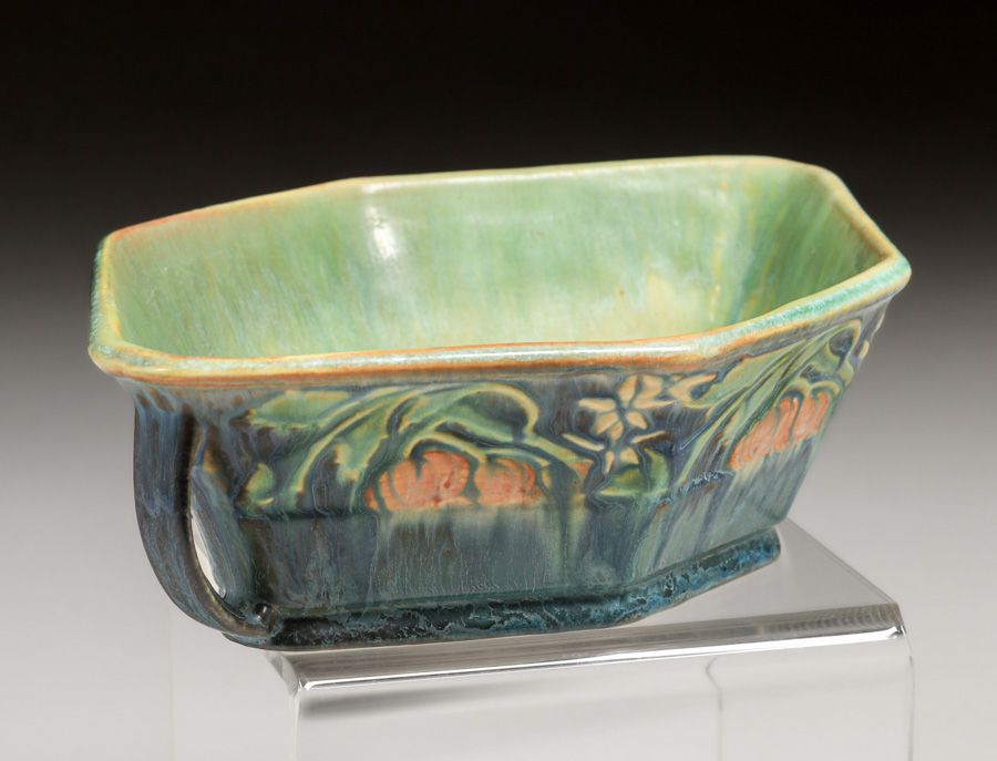Roseville Pottery Green Baneda Two-Handled Vase c1930s. Unsigned. Perfect condition. 11"w x 7.5" x 3"h SOLD