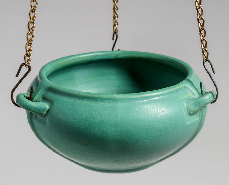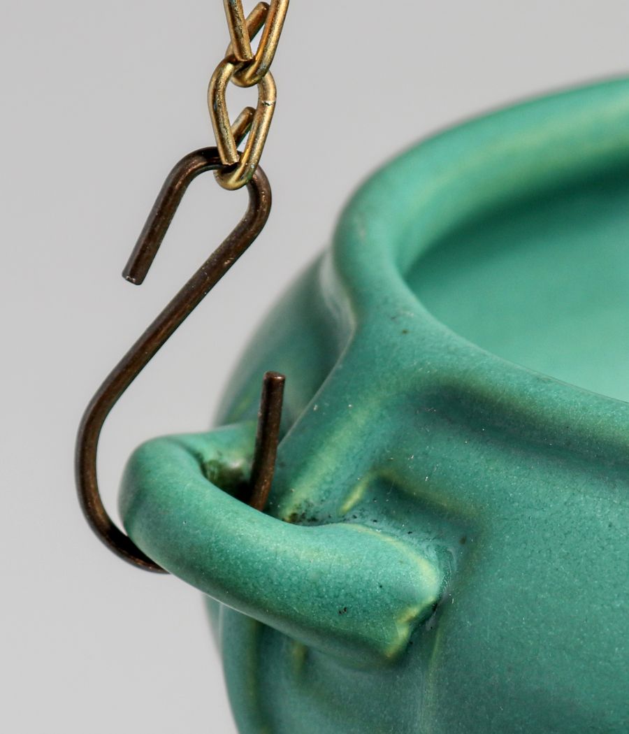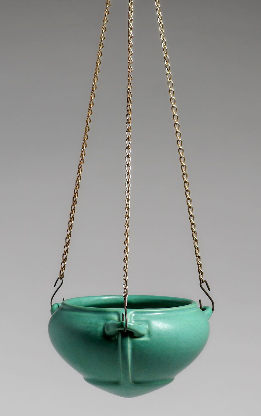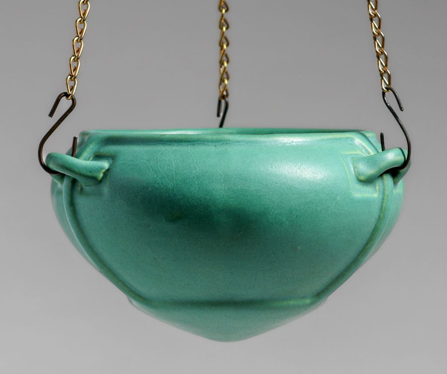 - Roseville Pottery Matte Green Hanging Jardiniere c1910